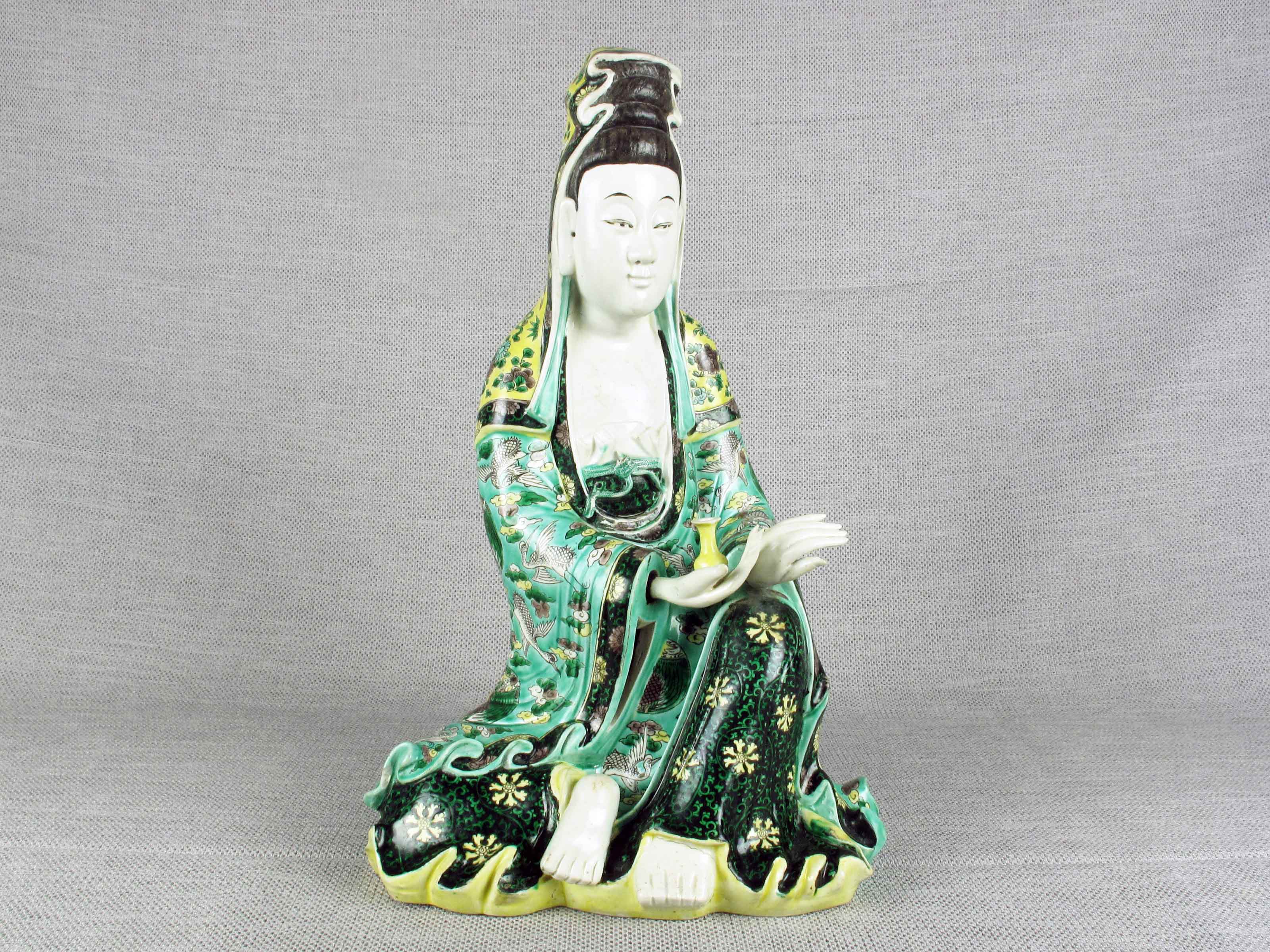 Cina (XIX secolo) Guanyn seduta Porcellana Altezza 46 cm Lievissima...