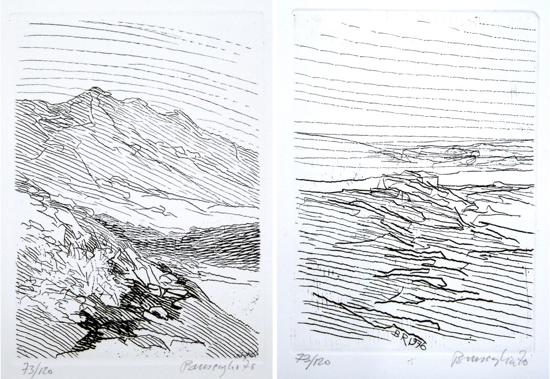 es. 73/120, n. 2 acqueforti firmate dall'artista