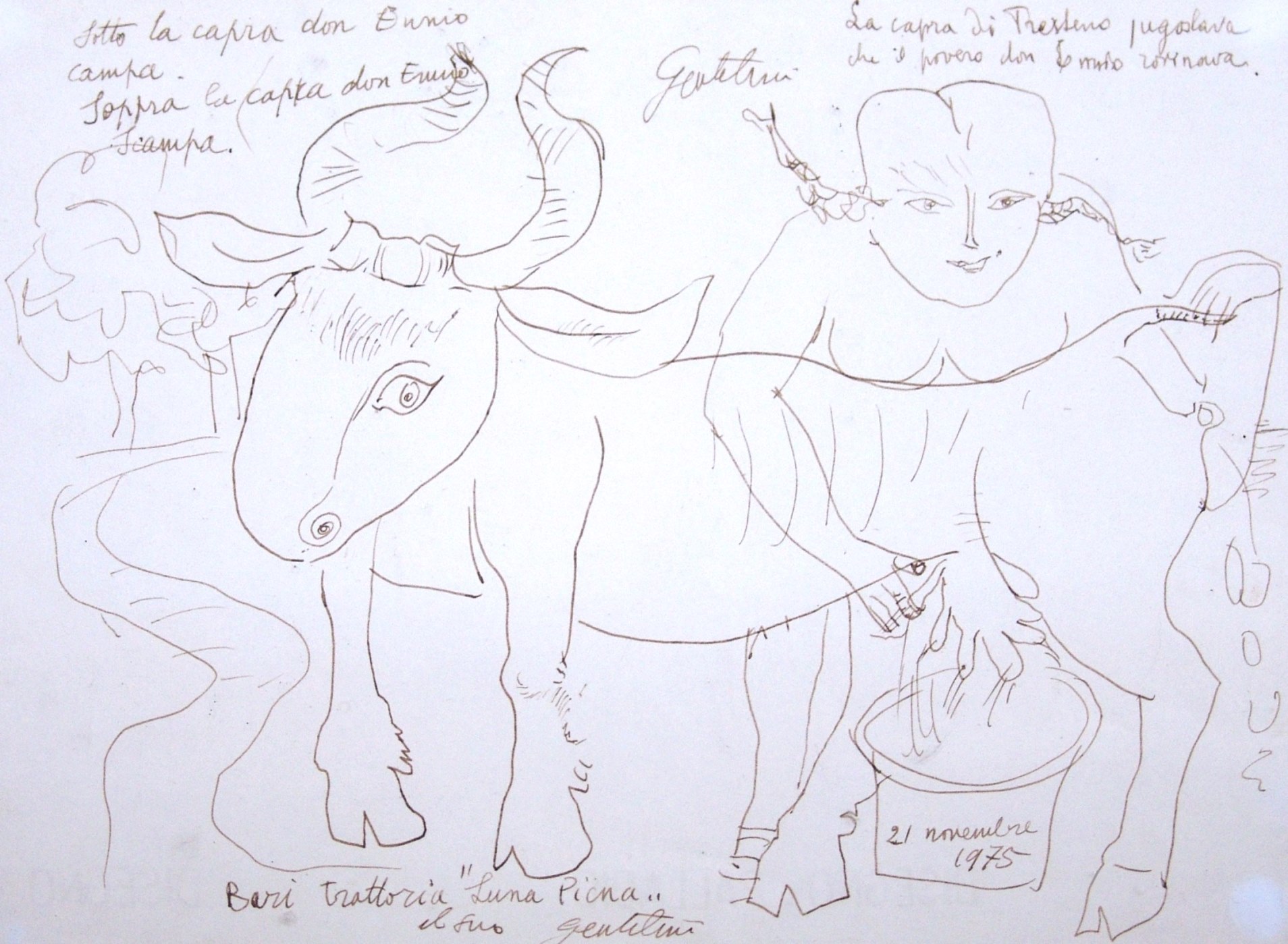 firma dell’artista in alto al centro, dedica in basso a sinistra