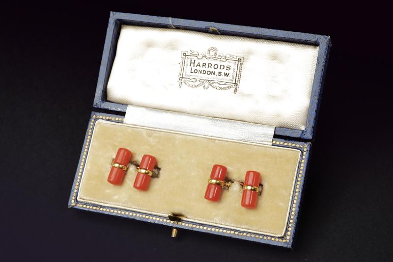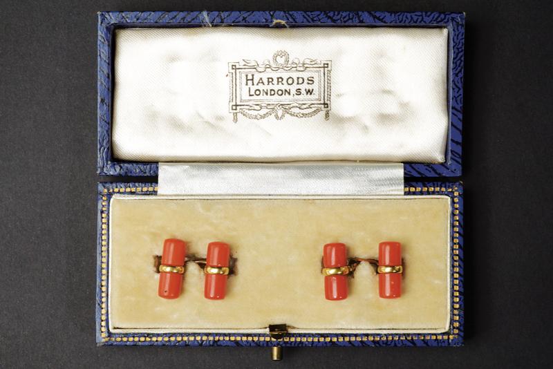 Polsini da camicia in corallo ed oro 750/000, presentati in scatola originale di Harrods Londra. Peso 5,6 gr. Il lotto é stato identificato come contenente materiali organici che possono essere sottoposti a restrizioni per l'importazione o l'esportazione. Chi fosse interessato é pregato di mettersi in contatto con i nostri uffici prima dell'asta