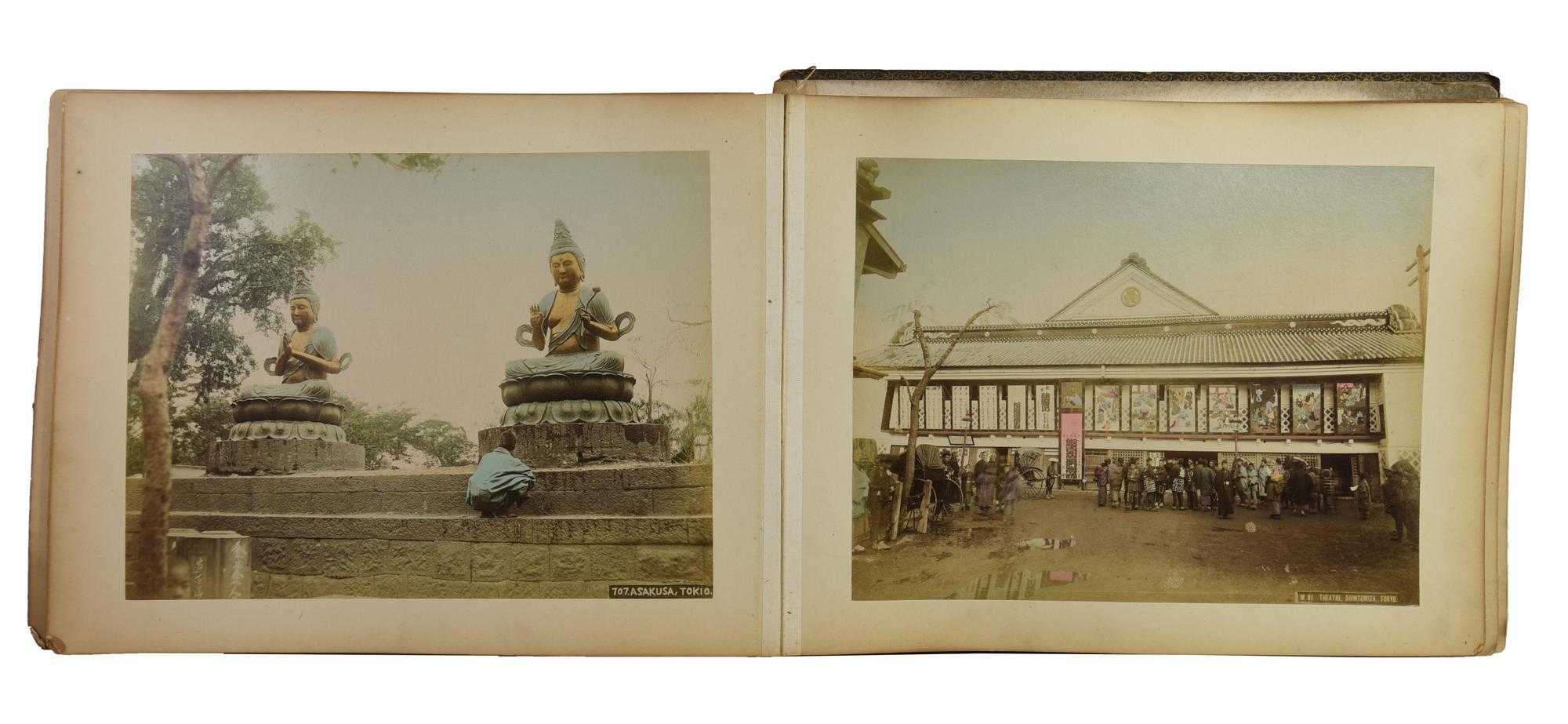 ALBUM SOUVENIR GIAPPONESE FINE XIX SECOLO completo di fotografie, cm 27,5x35...