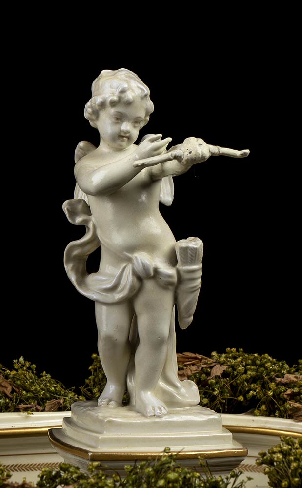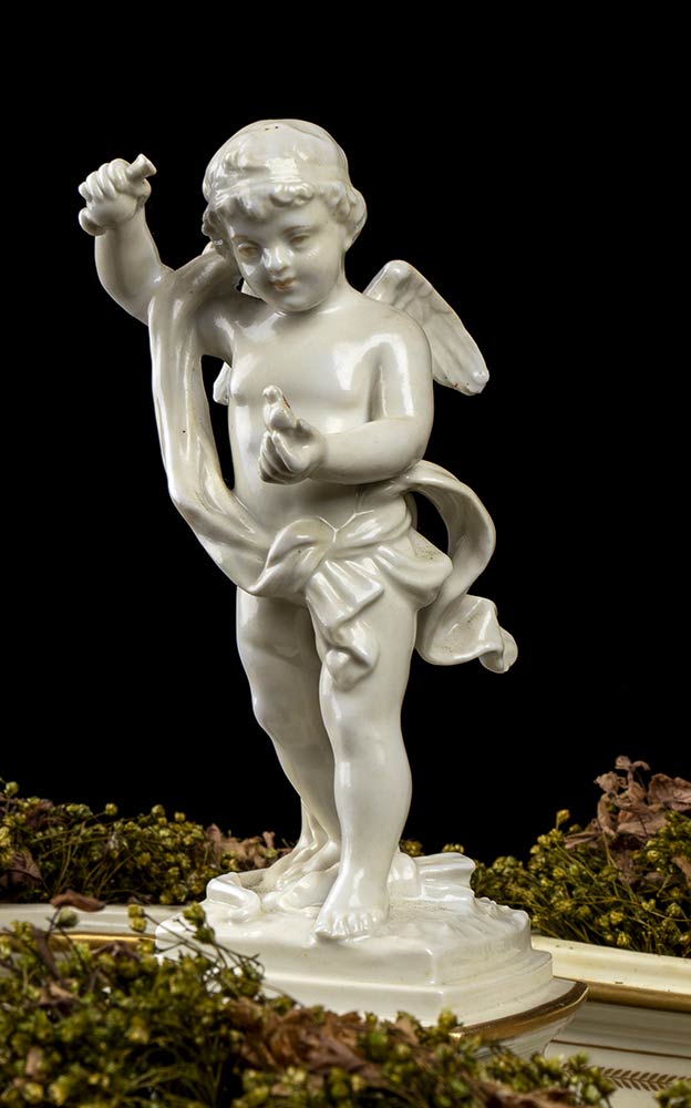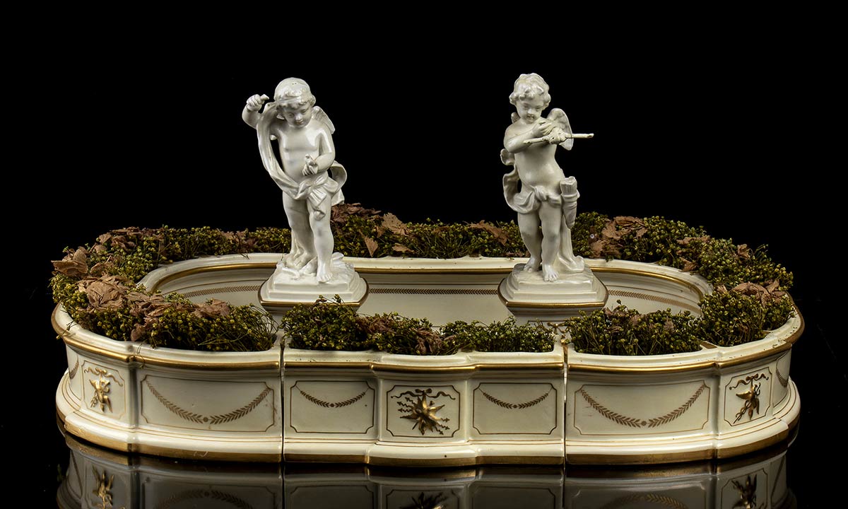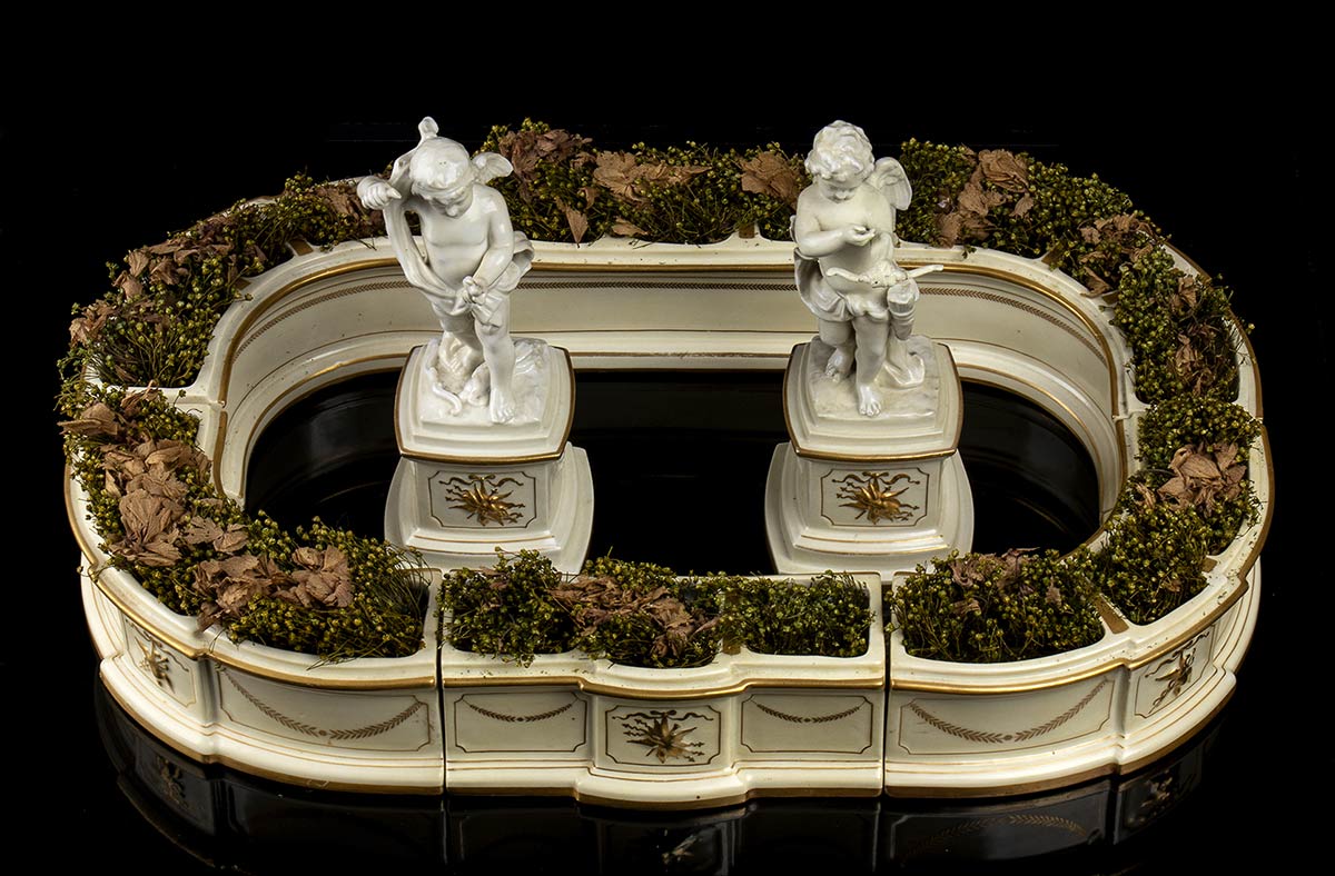 Centrotavola componibile formato da 6 pezzi e due statuine di putti