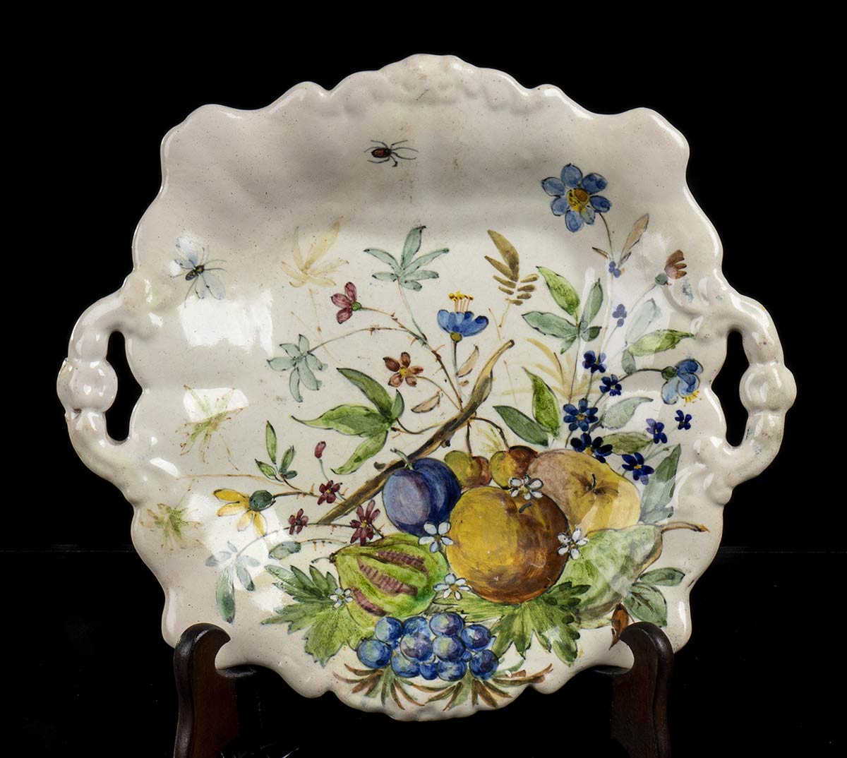 MANIFATTURA CERAMICA MINGHETTI - BOLOGNA<br>Vassoio con manici e fiori