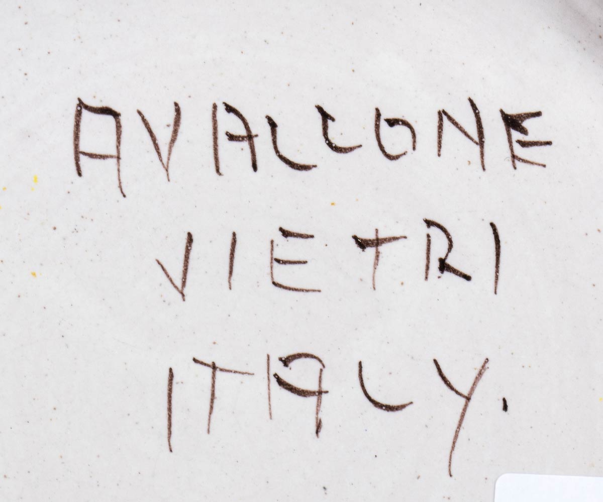 AVALLONE - VIETRI<br>Piatto decorato con paese e persone su fondo verde