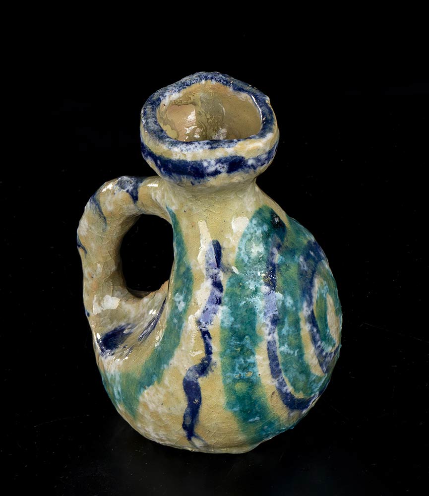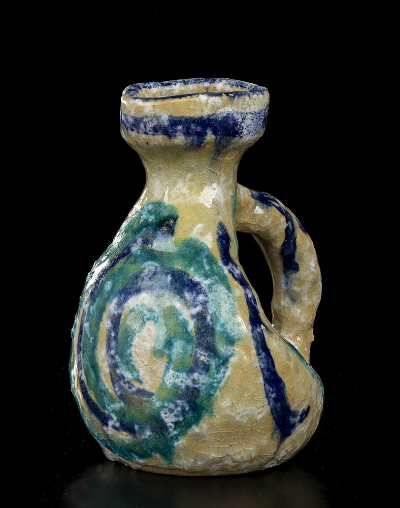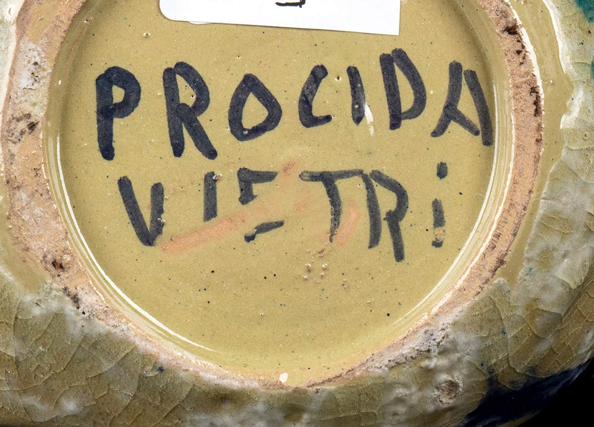 Discrete condizioni, parti della decorazione scolorite e presenta venature sulla superficie, firma sotto la base