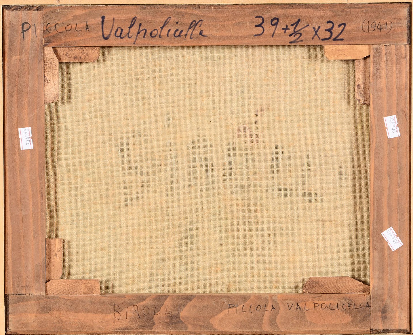 Renato Birolli (1905-1959), Piccola Valpolicella, 1941, olio su tela, cm 32x39,5 firmato al retro firmato, intitolato e datato al retro sul telaio Opera registrata presso l’Archivio Renato Birolli, Milano, con il n. 1941.1. Esposizioni: Renato Birolli, Galleria Macchi, Pisa, marzo-aprile 1972 (catalogo) Renato Birolli, Galleria Il Fillungo, Lucca, gennaio-febbraio 1972 (catalogo) Bibliografia: Zeno Birolli e Roberto Sambonet, Renato Birolli, Feltrinelli Editore, Milano, 1978, p. 217, n. 1941.5