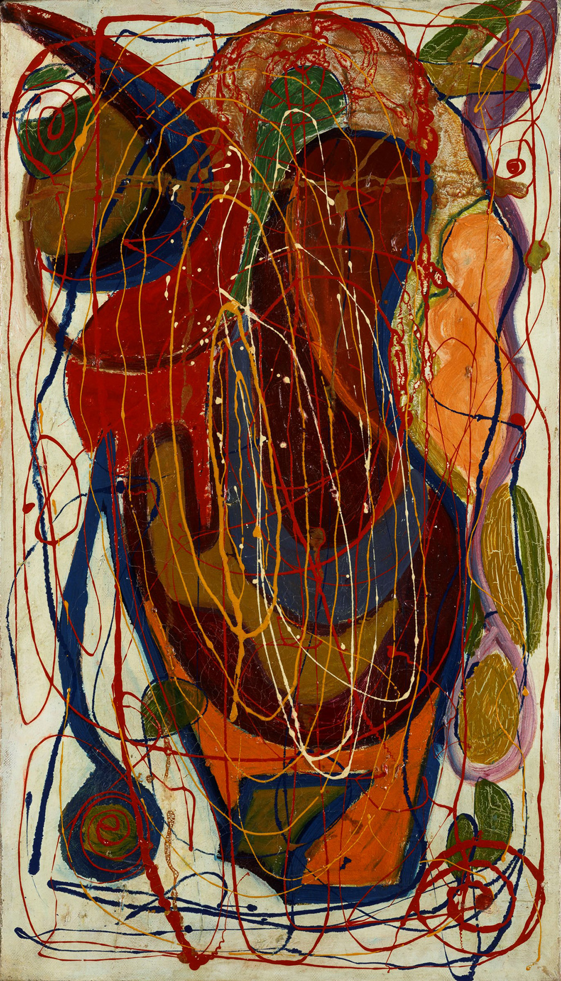 Giuseppe Allosia (1910-1983), Composizione n. 3, 1950-1951, olio su tela, cm 70x40. Provenienza: Collezione privata, Rapallo Esposizioni: Giuseppe Allosia, Comune di Cogorno S. Salvatore dei Fieschi, 16 maggio - 3 giugno 1984, ripr. a cat. Bibliografia: 7 pittori di Numero: Allosia, Bisio, Borella, Fasce, Mesciulam, Scanavino, Sturla, Genova, De Ferrari, 2011, Catalogo della mostra, Rapallo, Antico Castello, 15 luglio - 28 agosto