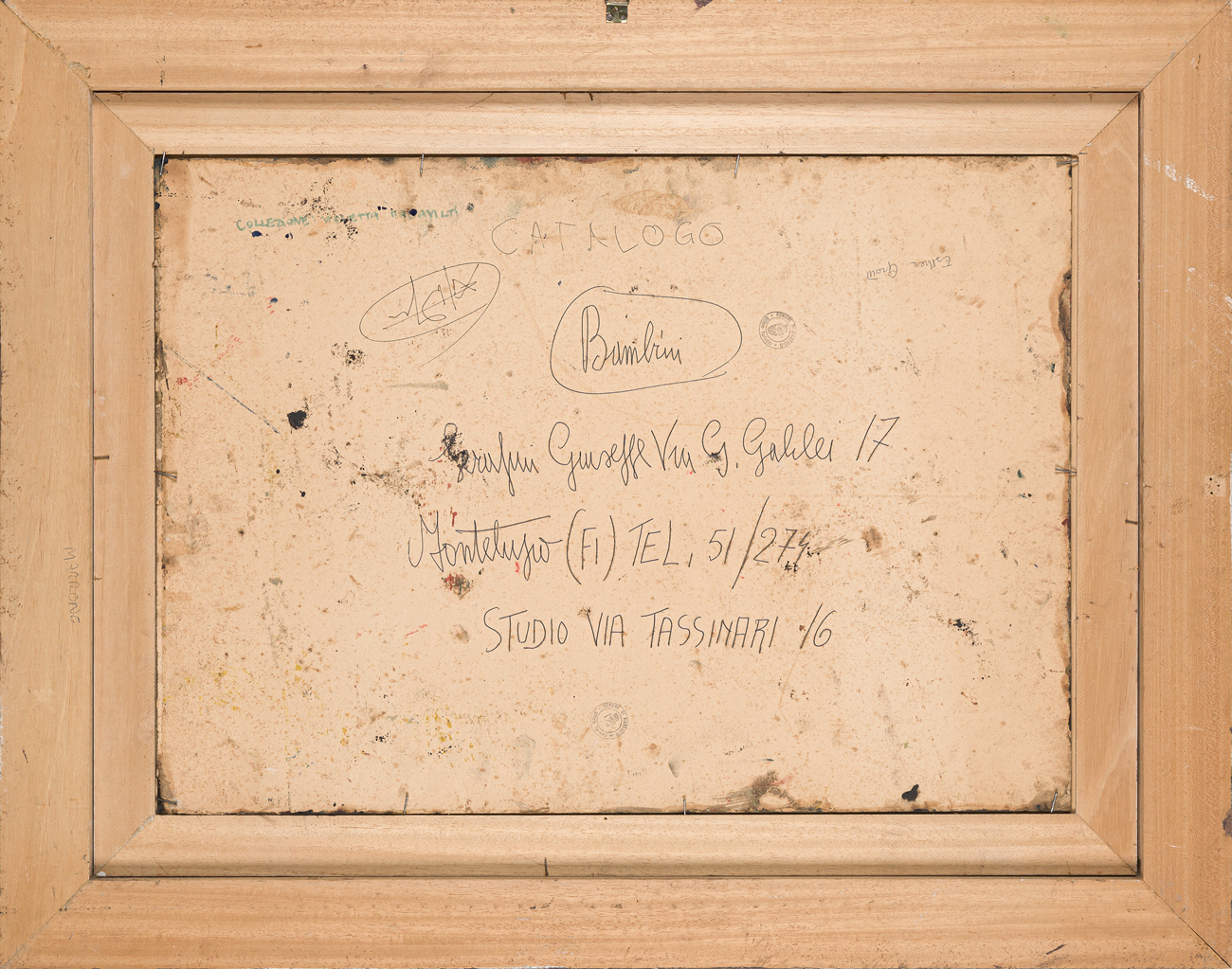 Firma, titolo e indirizzo dello Studio dell'Artista al retro