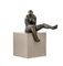 Scultura in bronzo poggiante su cubo in ottone cromato