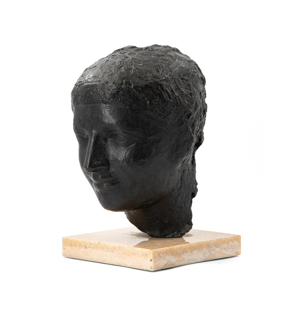 Scultura in bronzo poggiante su base in marmo
