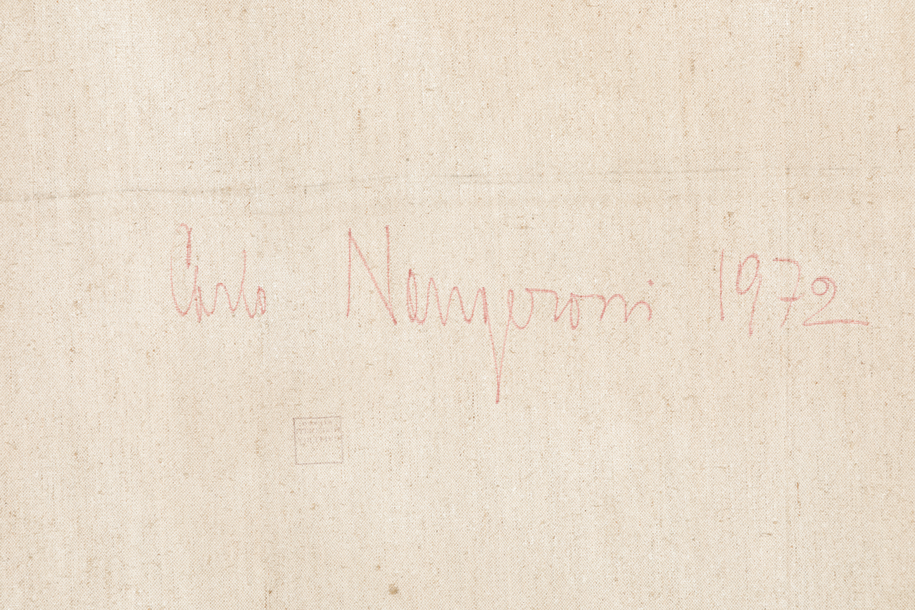 Etichetta della 'X Quadriennale Nazionale d'Arte di Roma 1972-1973' al retro