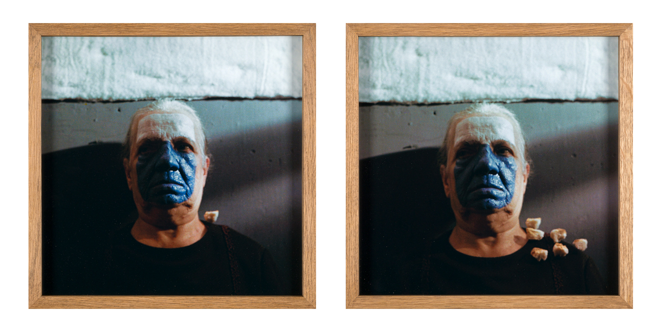 Firma, titolo, datazione, iscrizione 'Opera di 2 foto' e indicazioni per il posizionamento al retro del primo elemento