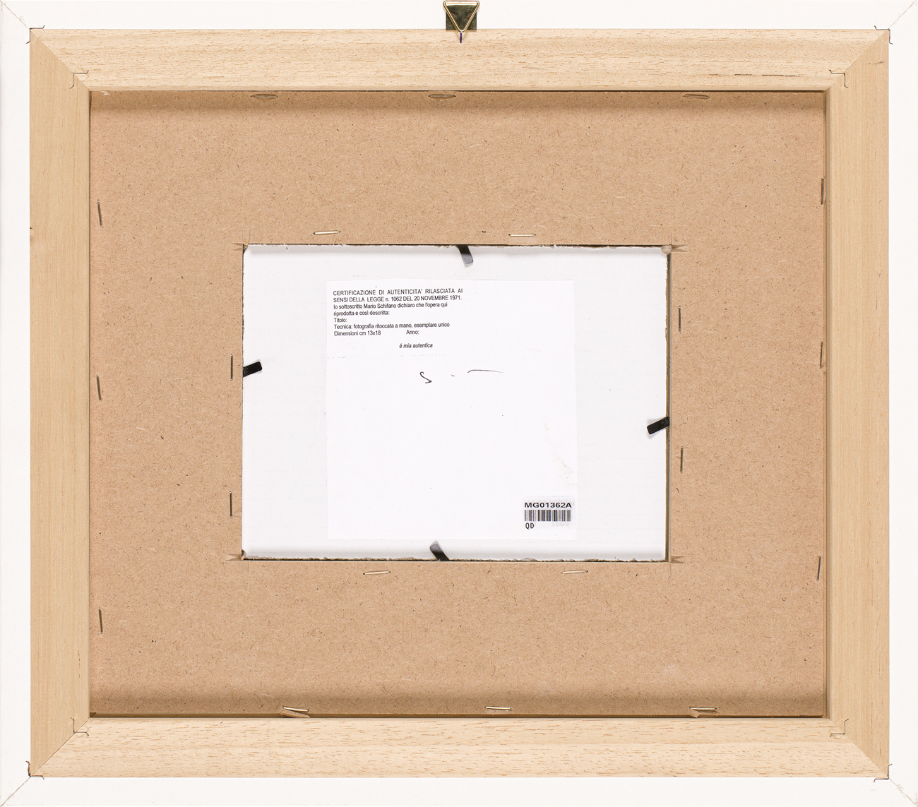 Dichiarazione di autenticità al retro