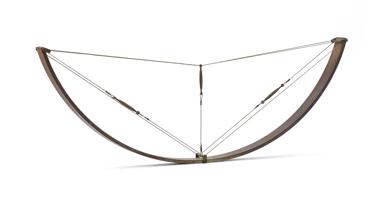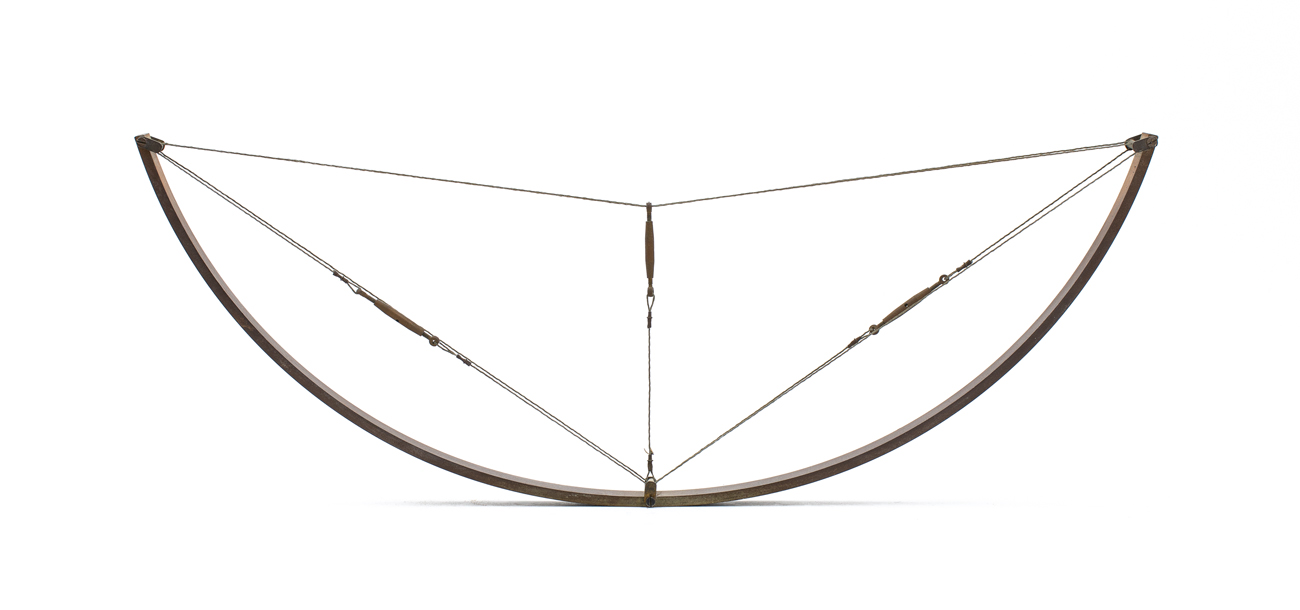 Scultura in acciaio, ottone e cavo in acciaio entro scatola originale in legno