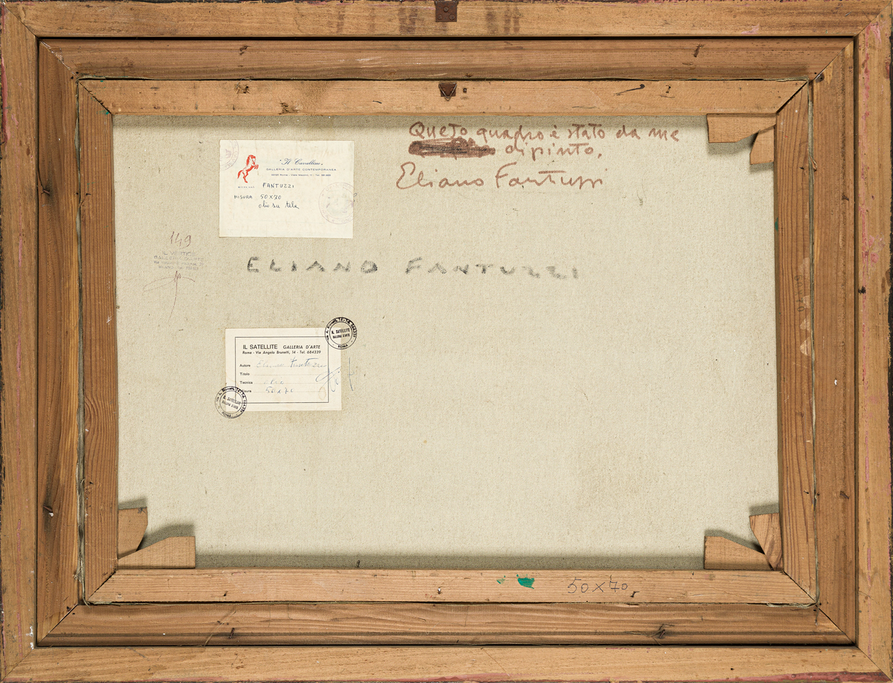 Etichetta e timbri della Galleria Il Cavallino (RM) al retro