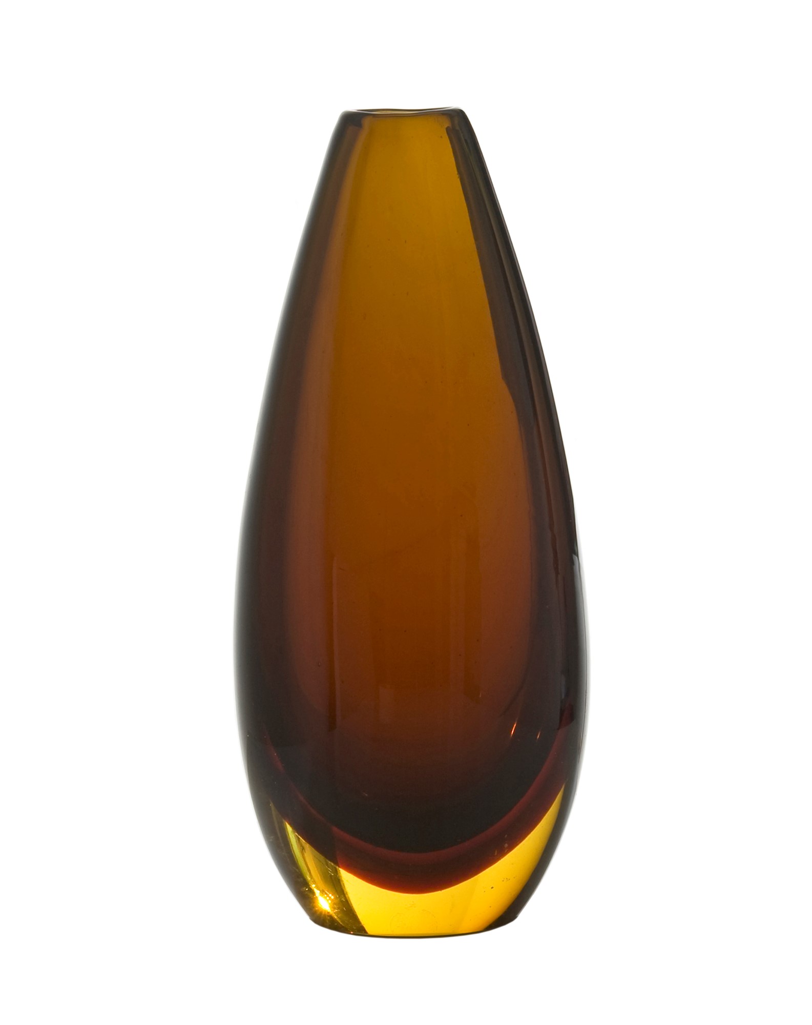 Flavio Poli - Vaso a goccia a sezione ovale in vetro sommerso a tre strati (giallo,topazio brusciato e rosso scuro)