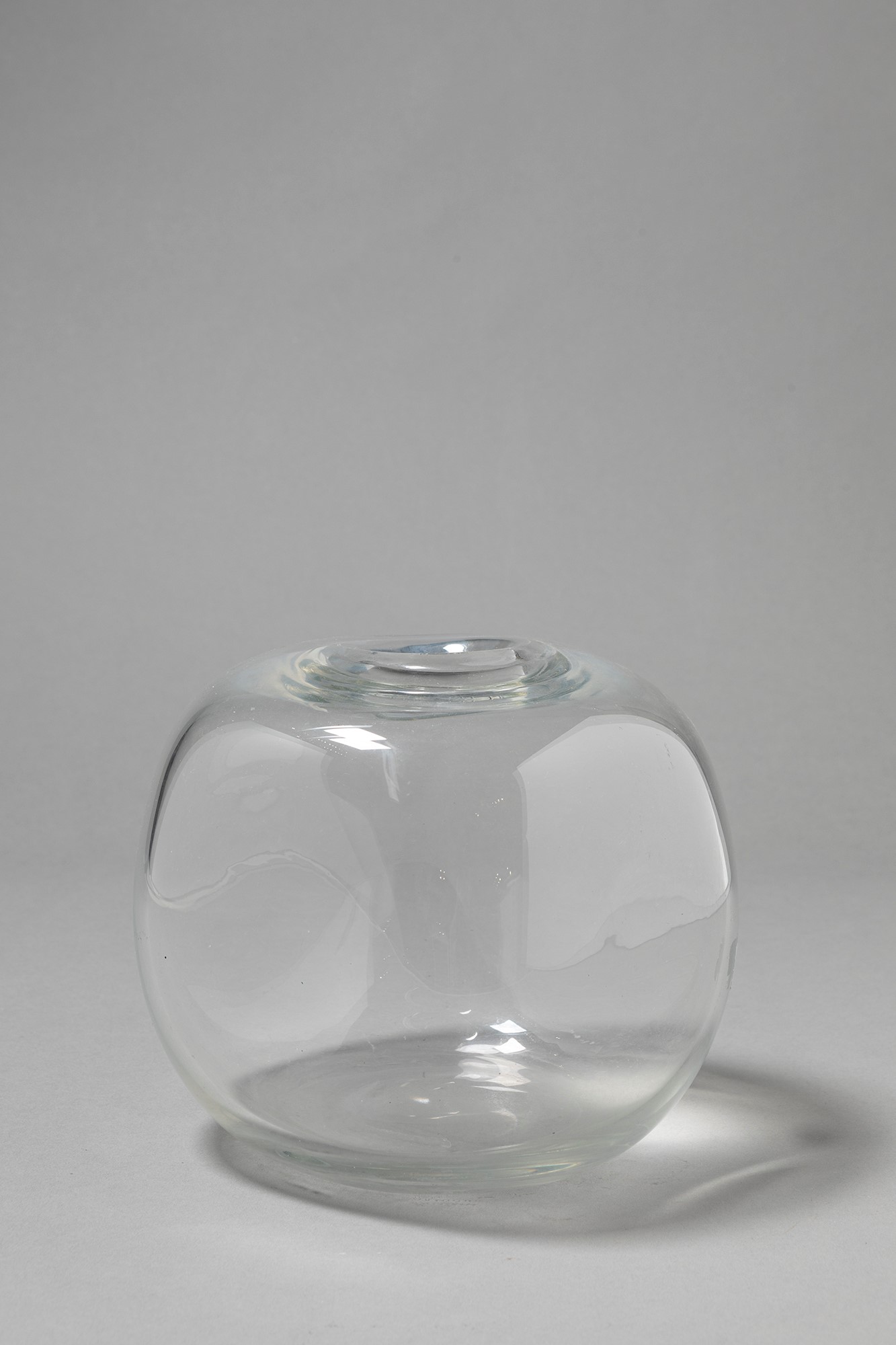 Alfredo Barbini - Vaso della serie Cubici. Vetro trasparente di forma cubica con apertura irregolare.