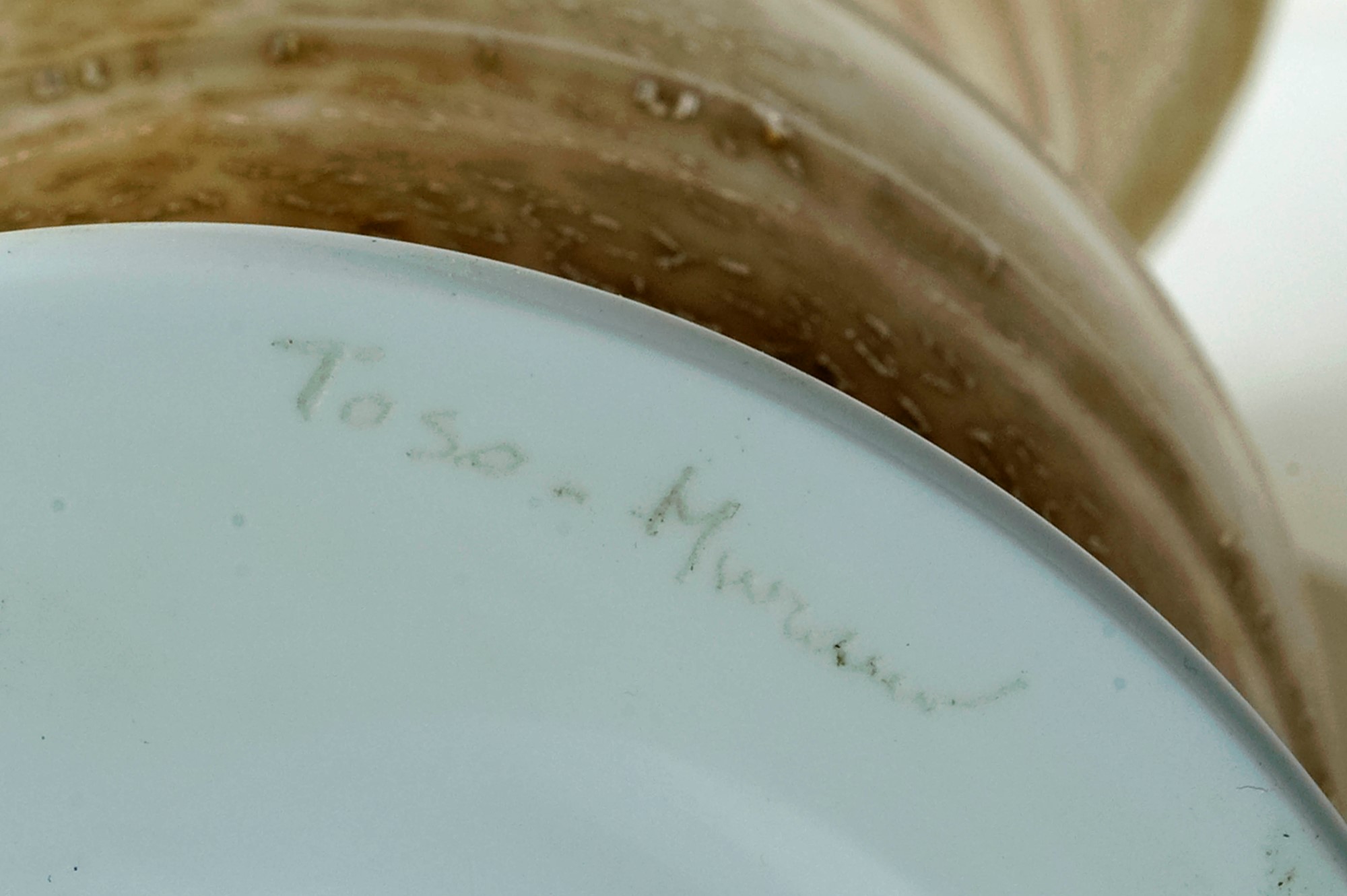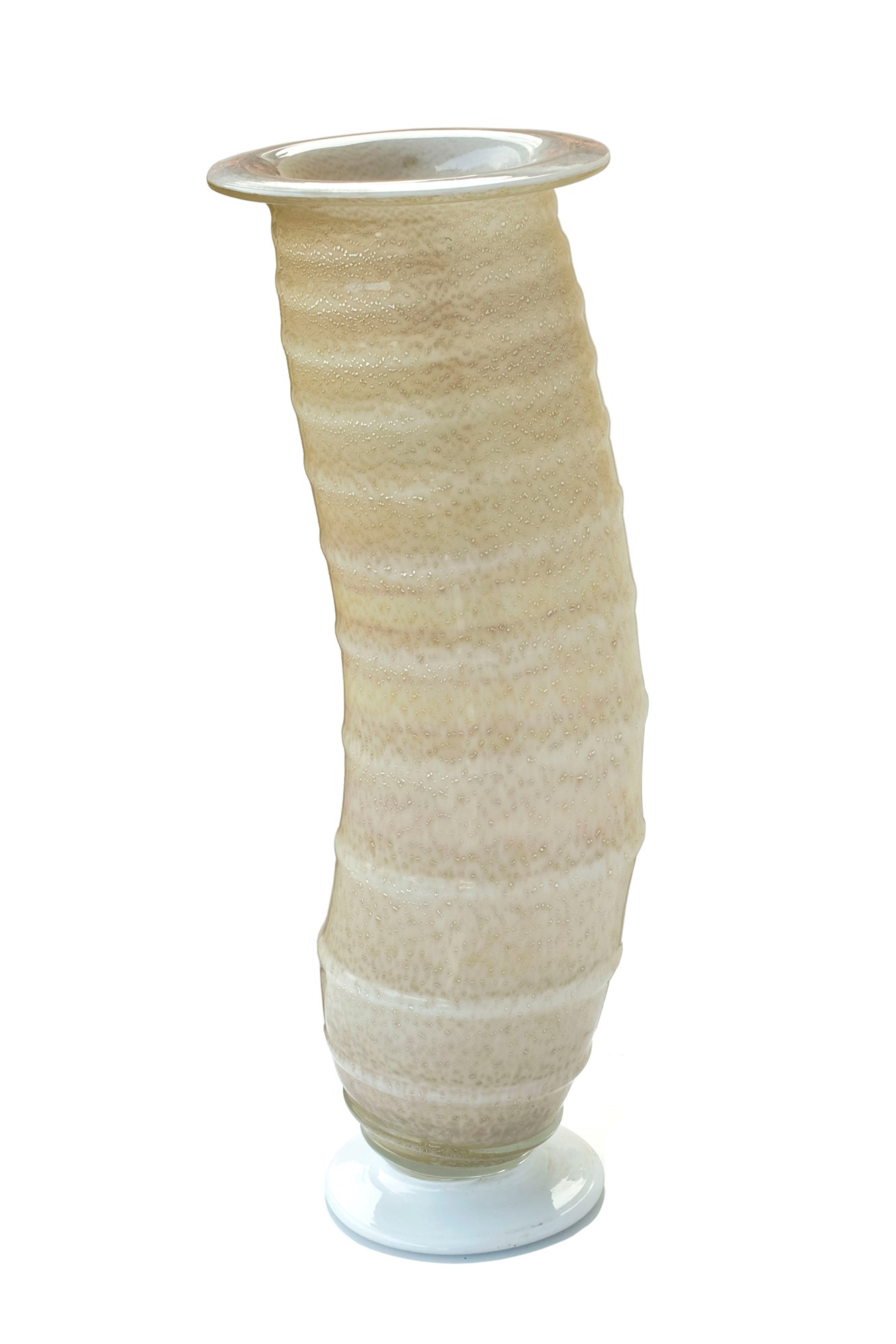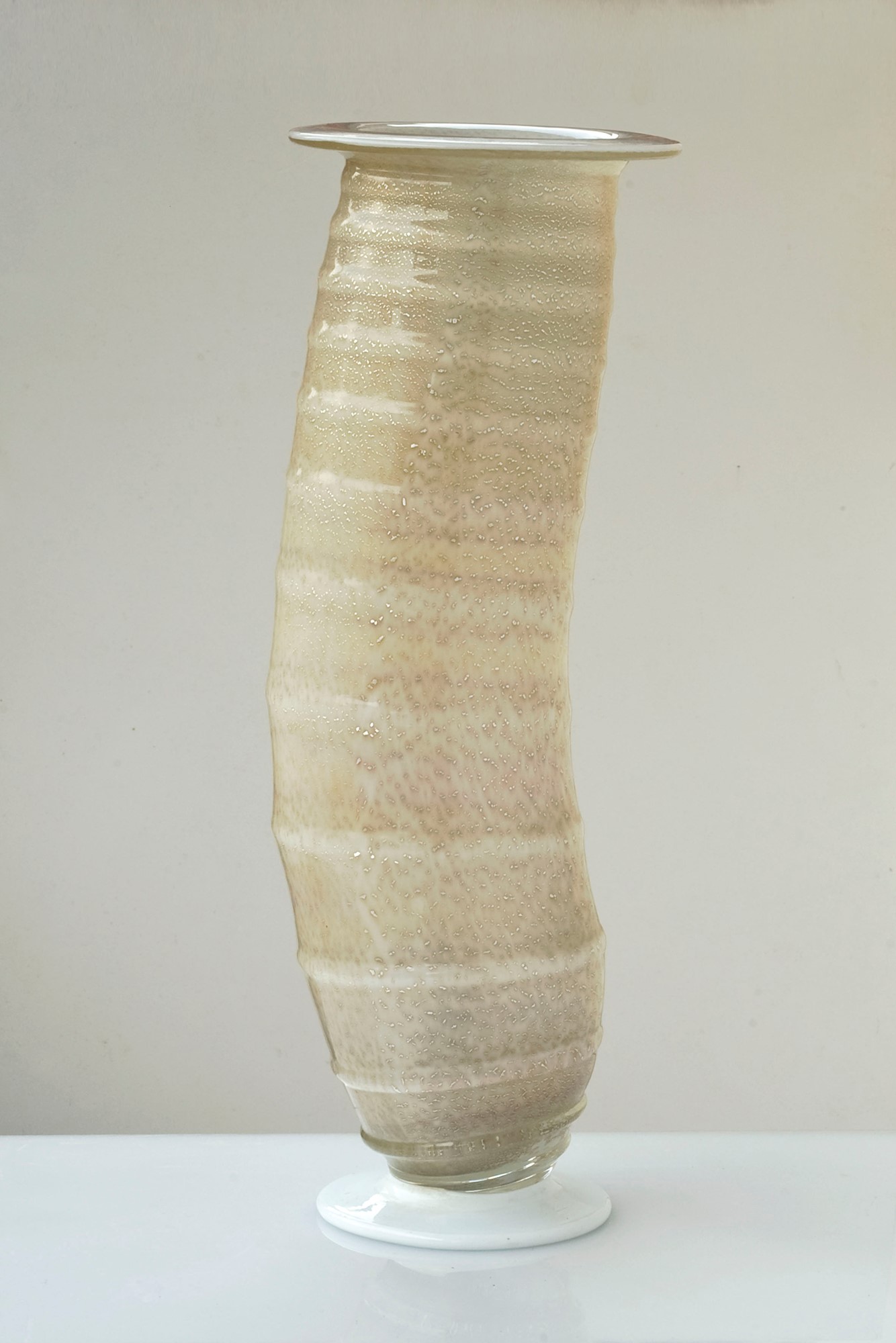 Toso Vetri d’Arte - Vaso in vetro lattimo incamiciato e foglia d'argento.Piede in pasta di vetro bianca. Firma a graffio Toso Murano.