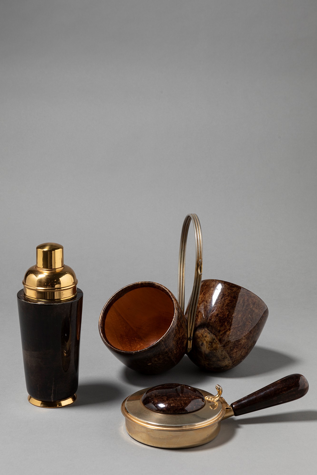 Aldo Tura - Set composto da un portabriciole, un porta frutta secca e uno shaker