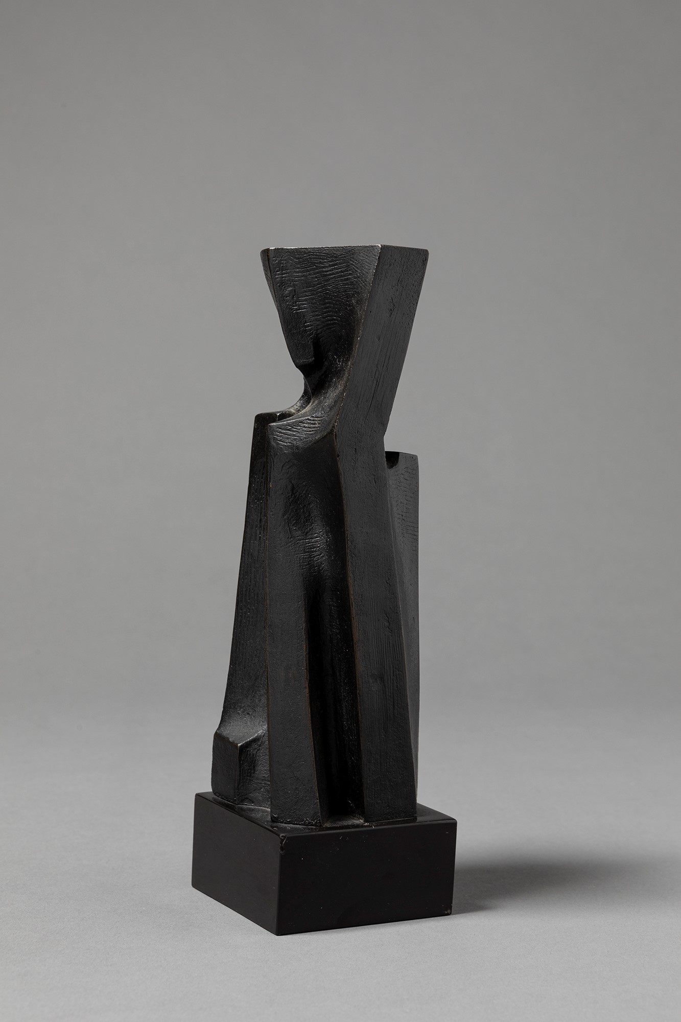 Giò Pomodoro - Scultura in bronzo a patina nera con base in marmo.