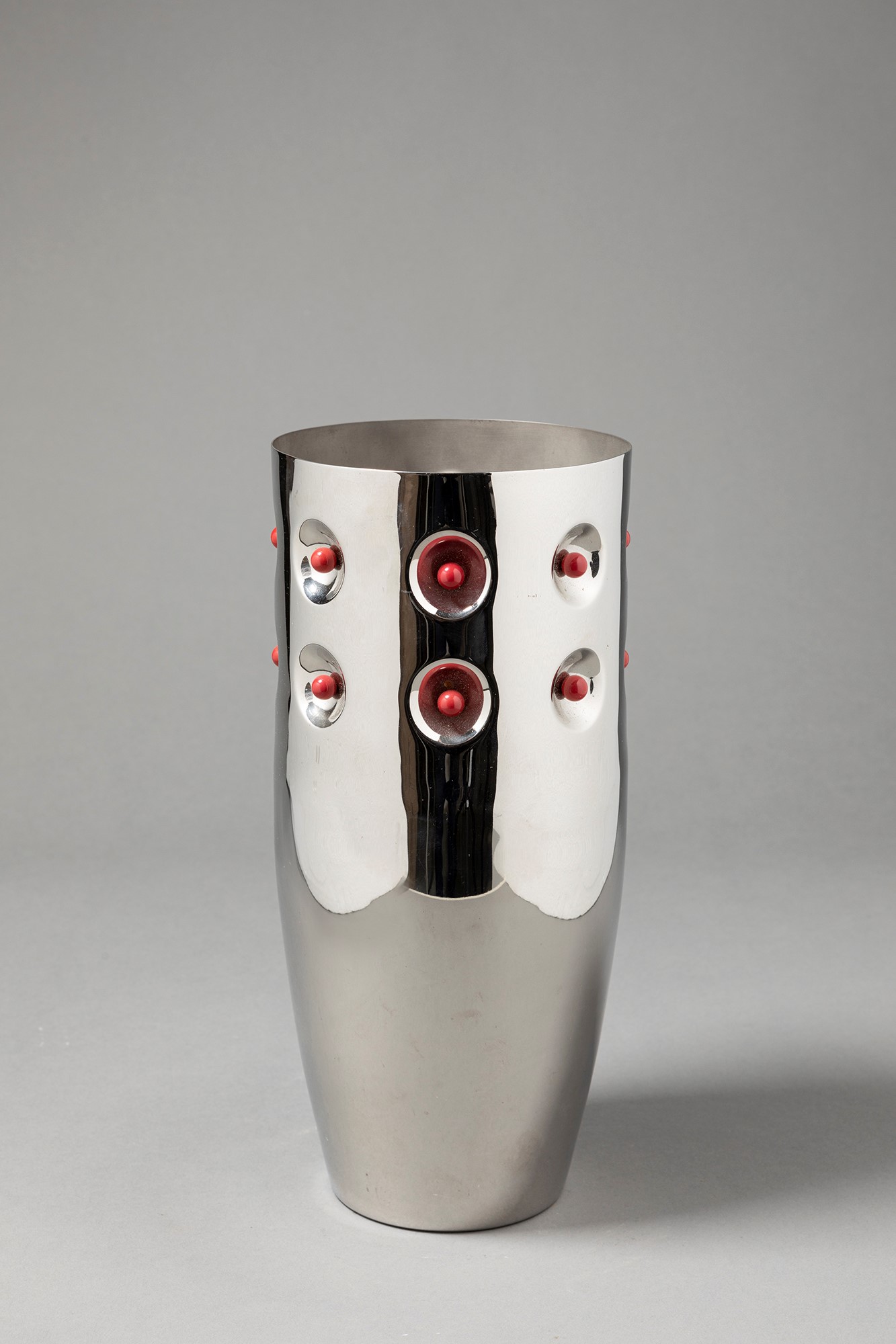 Tobia Scarpa - Vaso in acciaio e metallo smaltato rosso