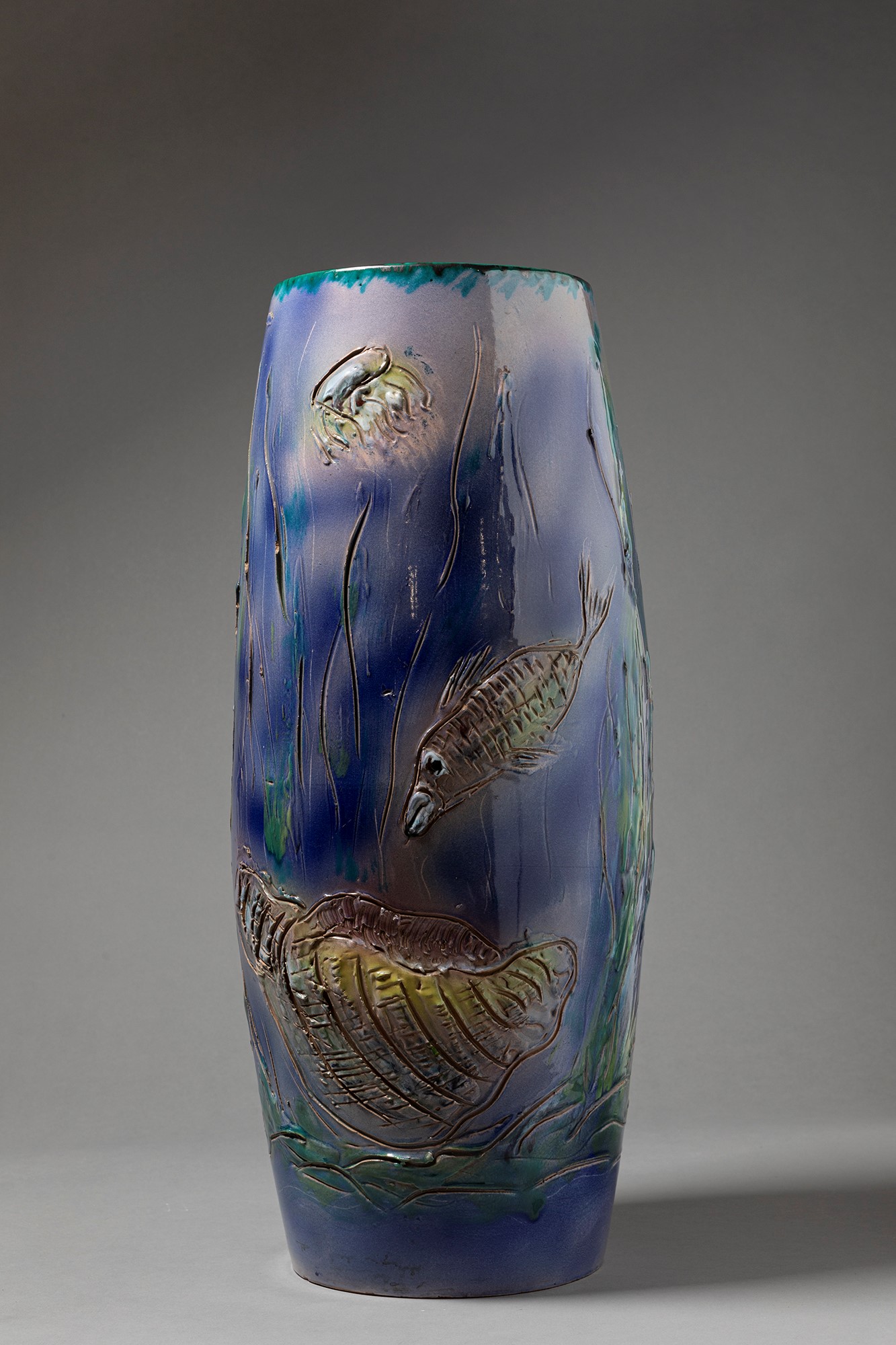 Umberto Ghersi - Grande vaso in ceramica smaltata a decoro marino.