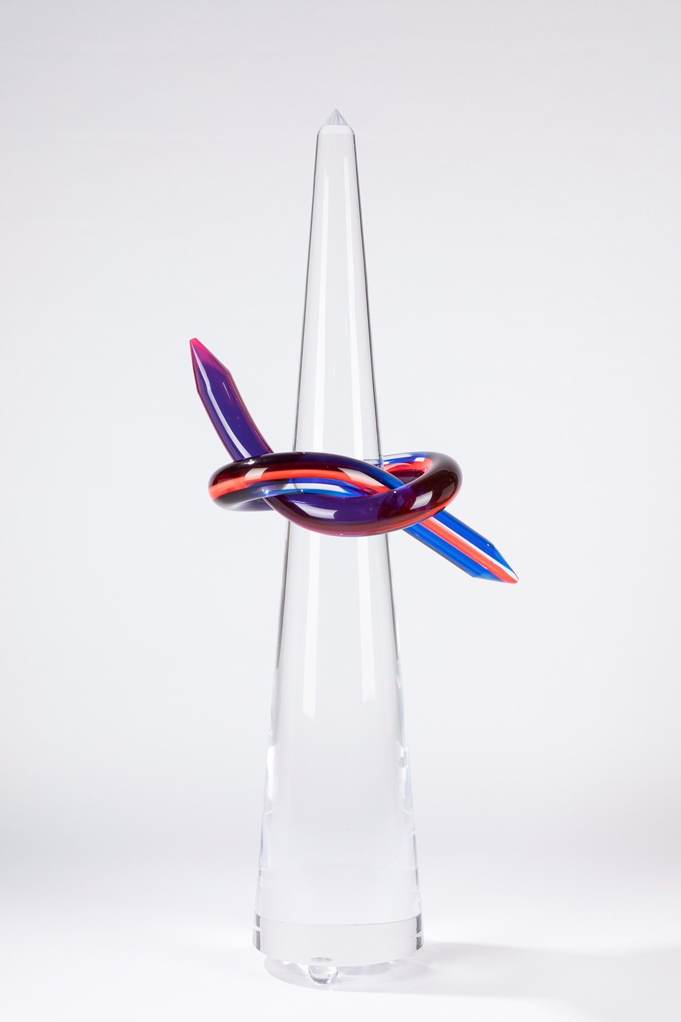 Manifattura Italiana - Scultura decorativa in plexiglass trasparente con decoro a fiocco multicolore.