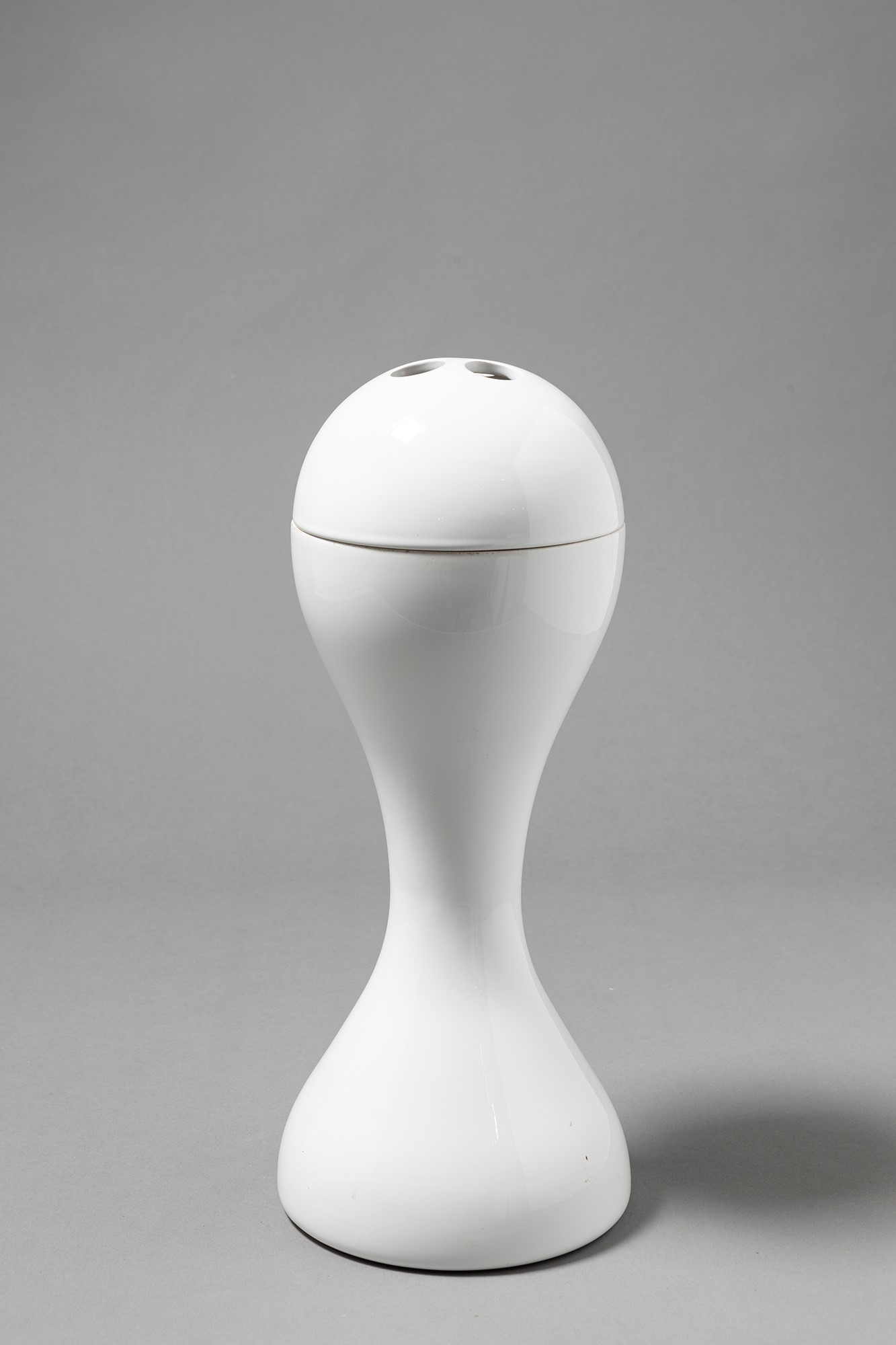 Marc Newson - Vaso con coperchio in ceramica smaltata bianca.
