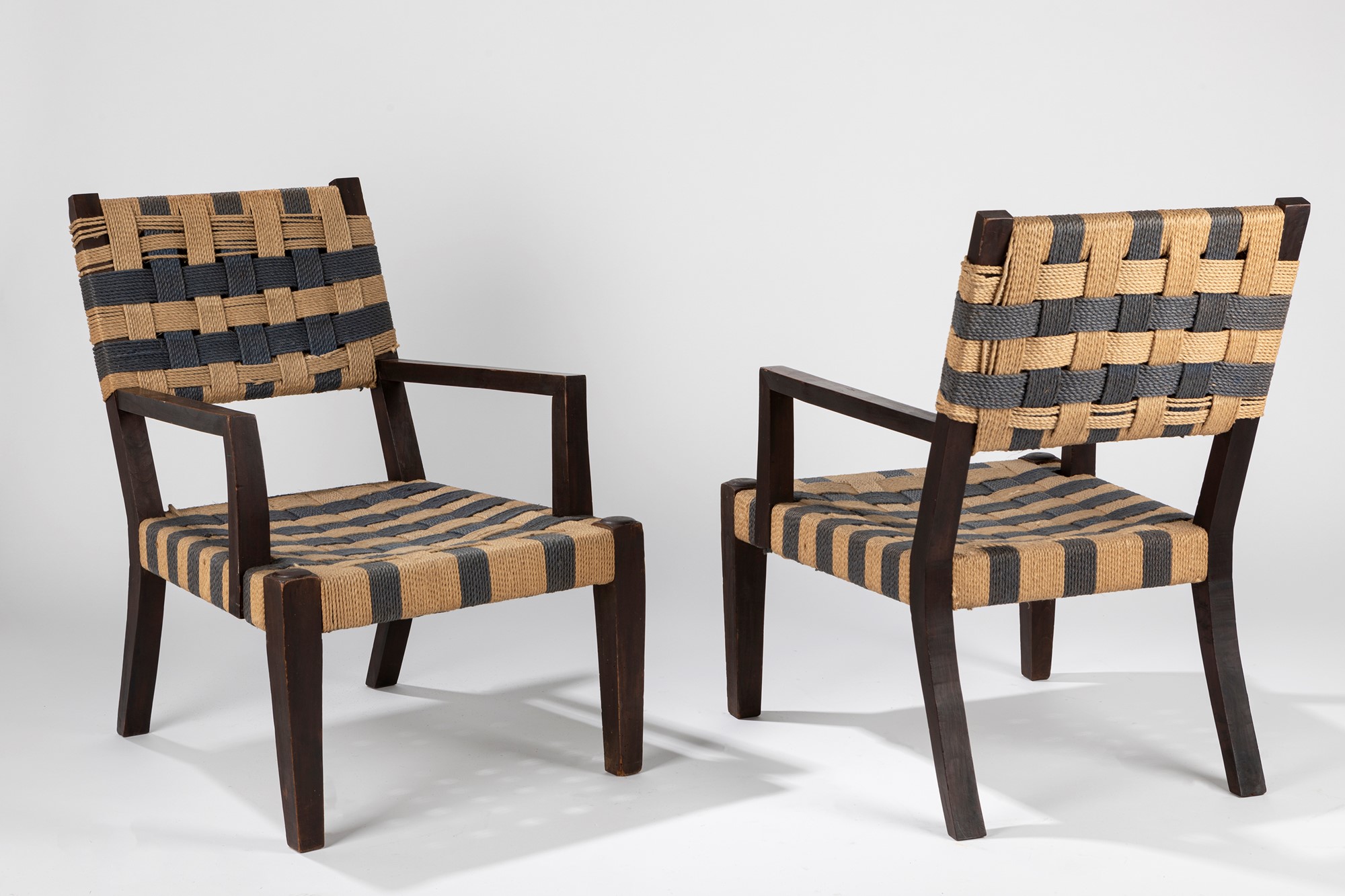 Paolo Buffa - Coppia di poltrone in legno, seduta e schienale in fasci di corda.