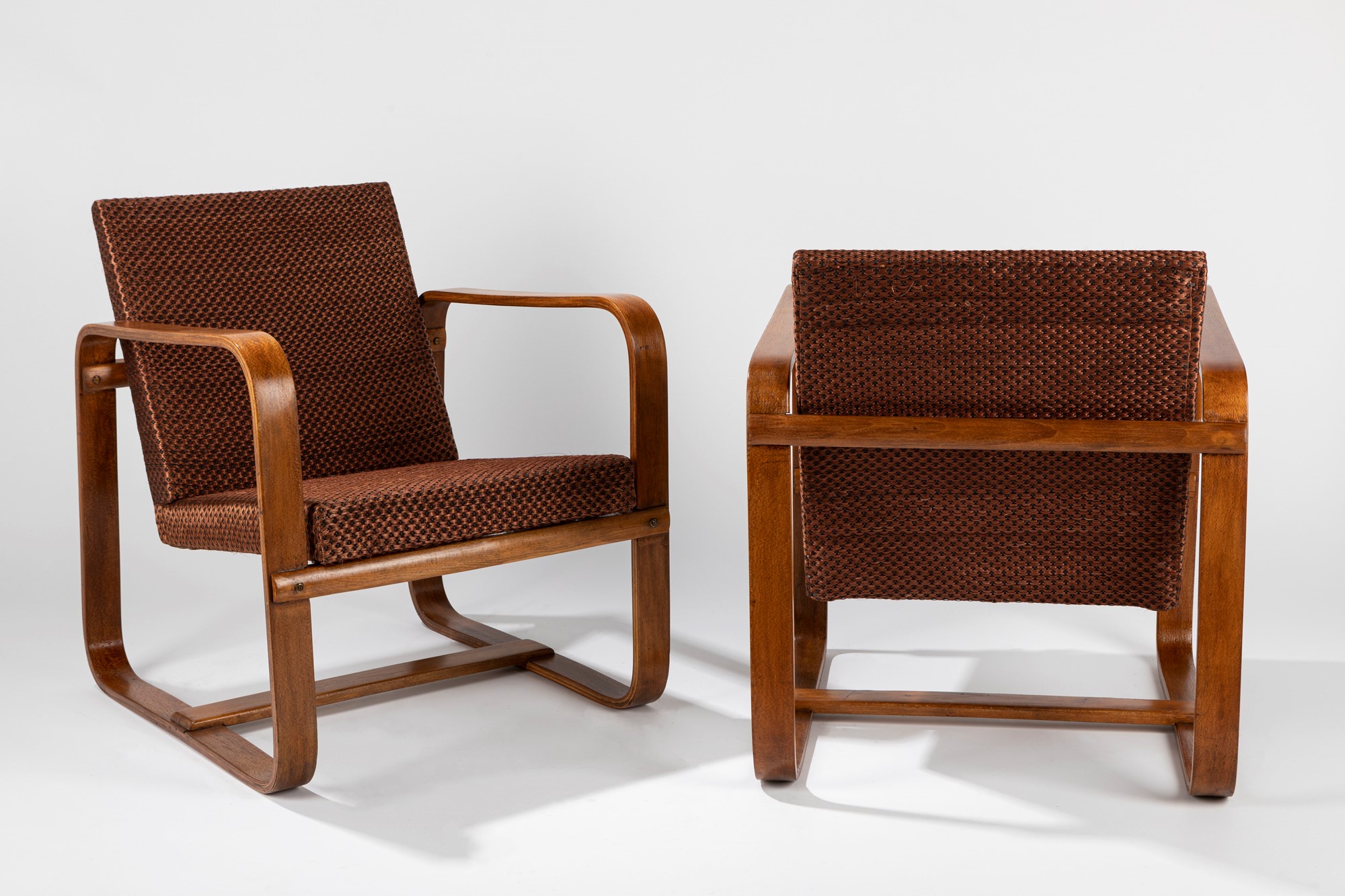 Giuseppe Pagano Pogatschnig; Gino Maggioni - Due poltrone in legno lamellare curvato.