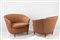 Manifattura Italiana - Coppia di poltrone a pozzetto con piedi in legno e rivestimento in tessuto.