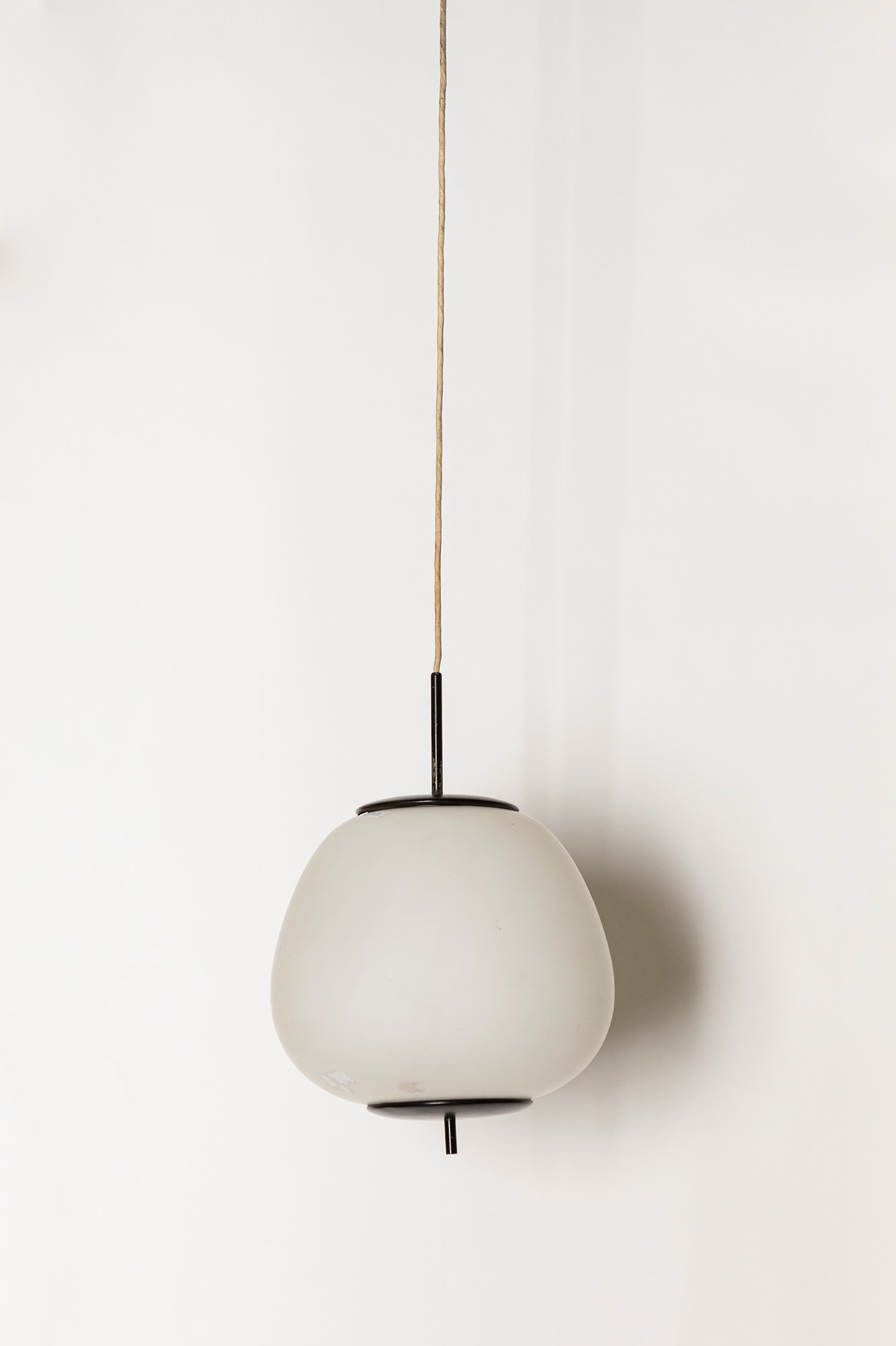 Arredoluce - Lampadario a sospensione in vetro opalino e metallo verniciato.
