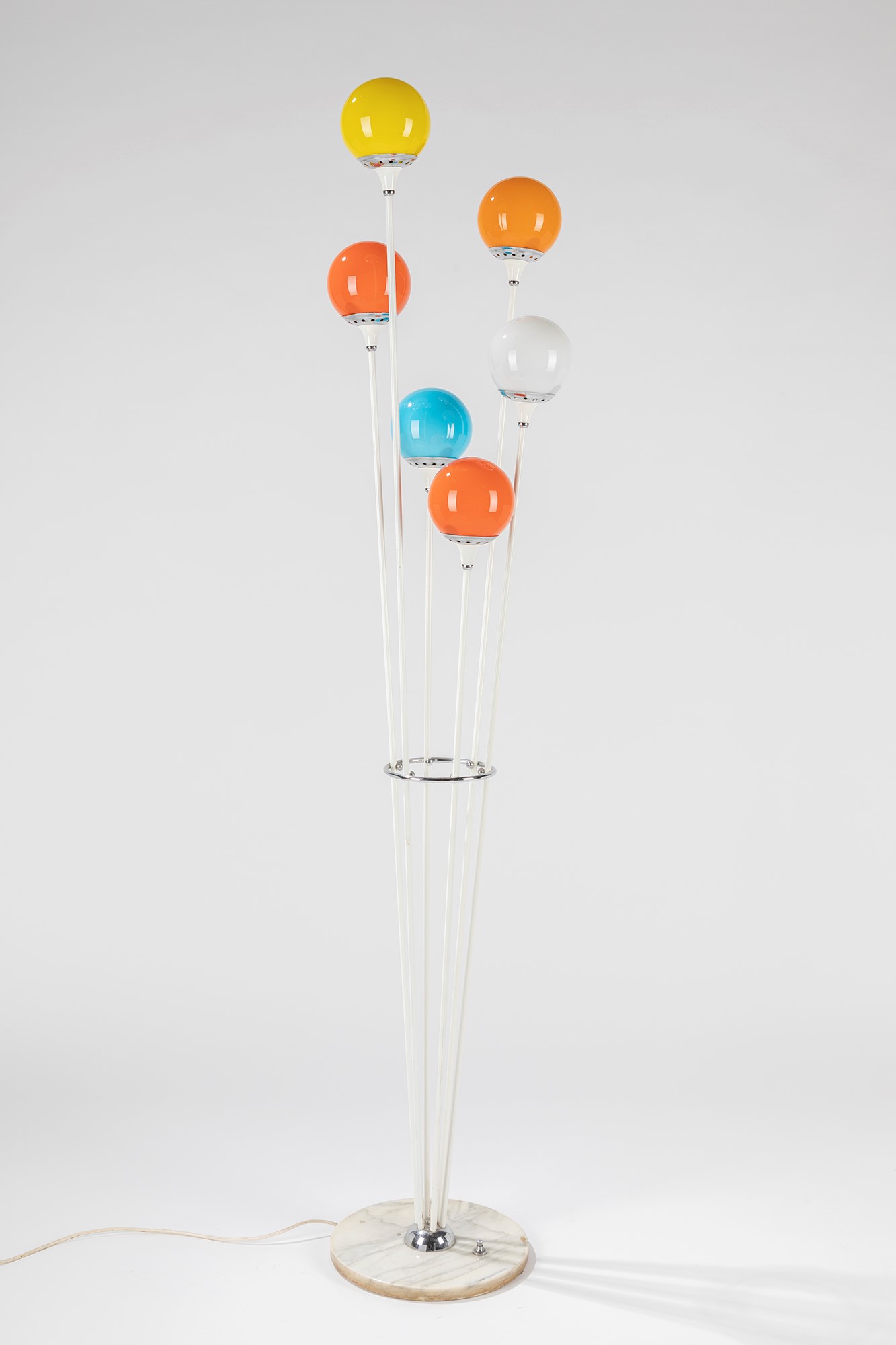 Stilnovo - Lampada da terra a sei luce con struttura in metallo verniciato, base in marmo e particolari in ottone.