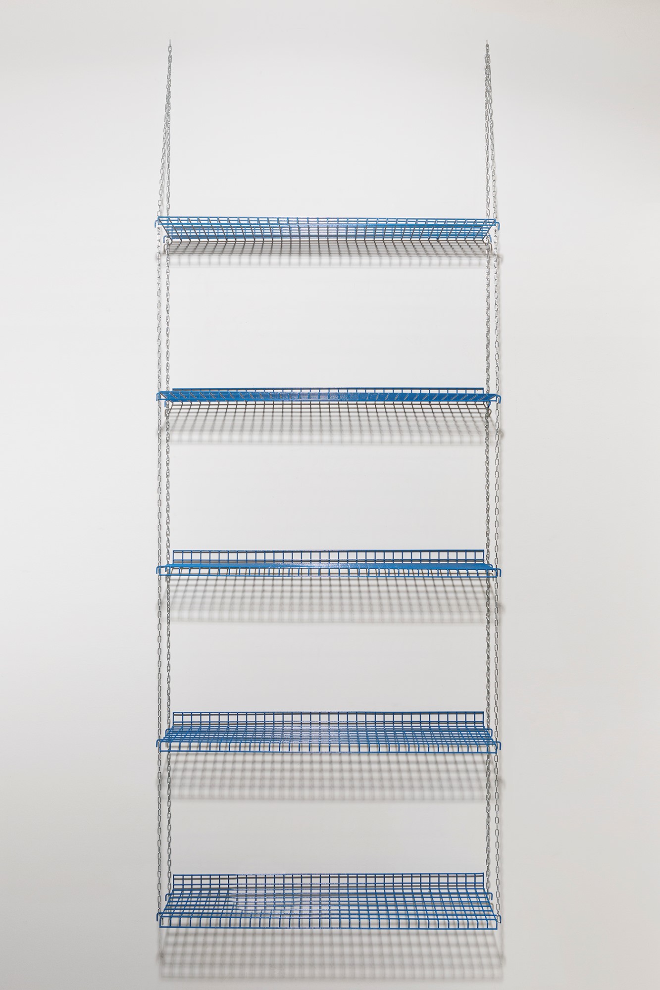 Bruno Munari - Libreria composta da due catene agganciate a muro, fra le quali vengono inserite cinque mensole in rete di acciaio.