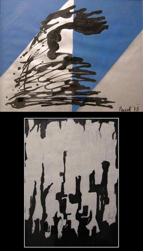 Lot 113 | Pavel. Lotto di due opere ad tecnica mista su faesite raffiguranti astratti,...