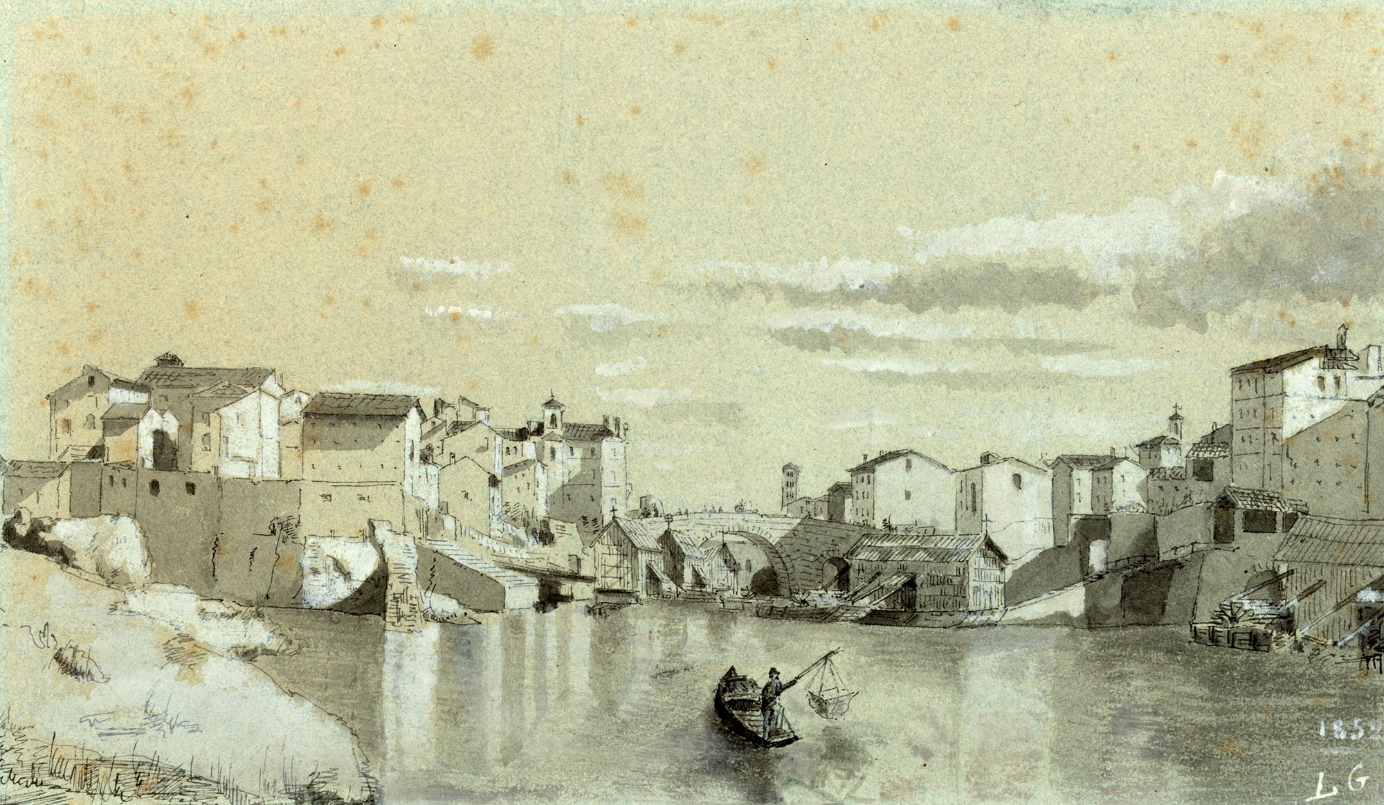 Scuola europea del XIX secolo - Roma, Isola Tiberina, 1852
