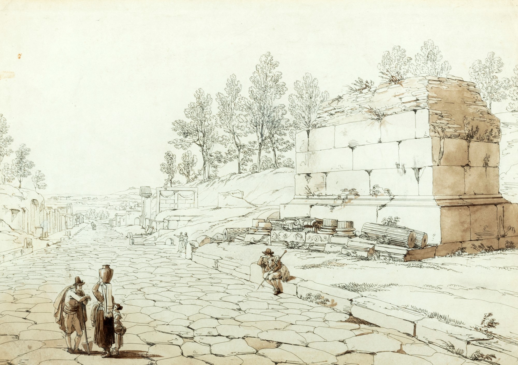 Scuola romana inizi del XIX secolo - Roma, sosta lungo la Via Appia Antica