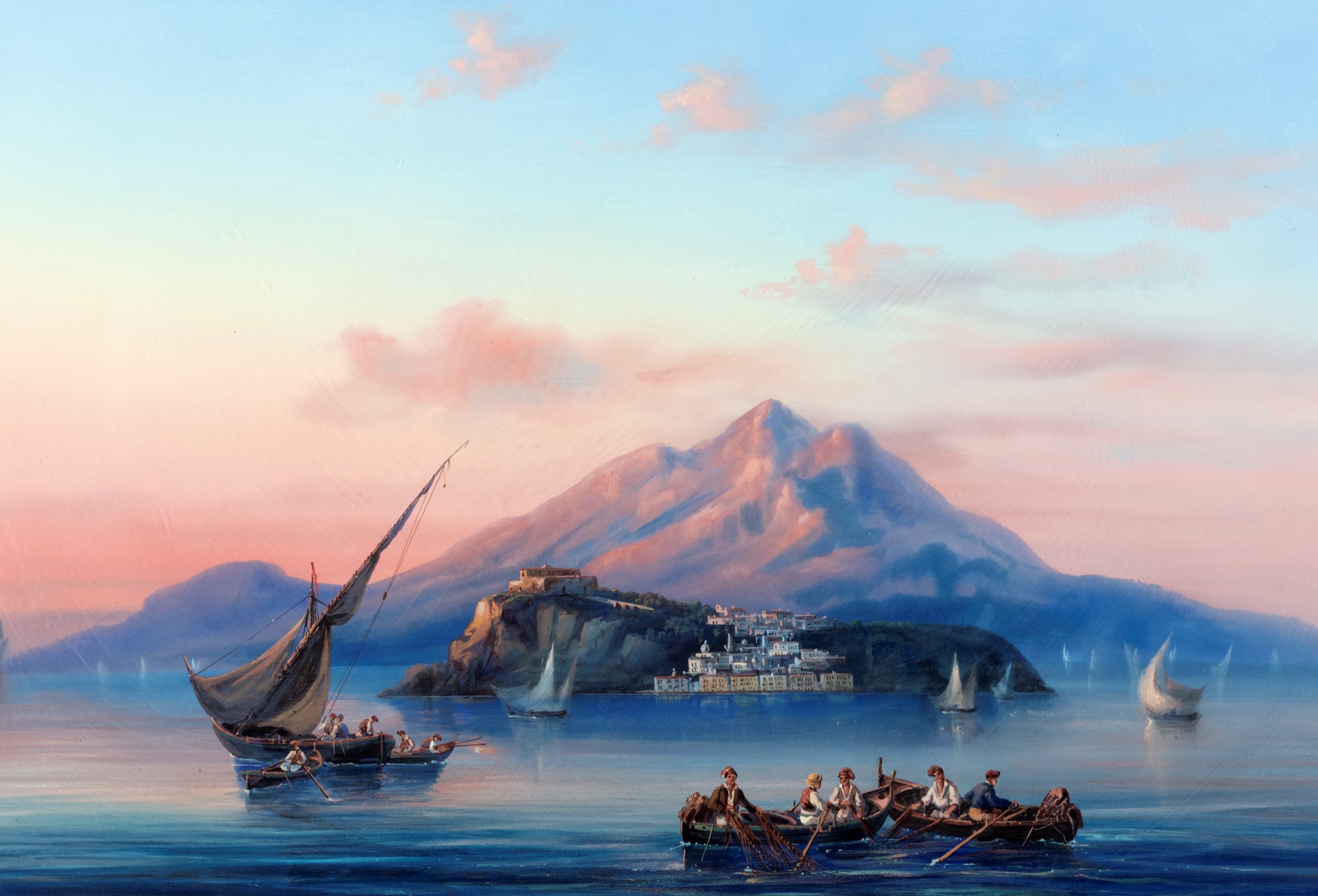 Gioacchino La Pira (attivo tra 1839 e 1875) - Pescatori al largo di Procida