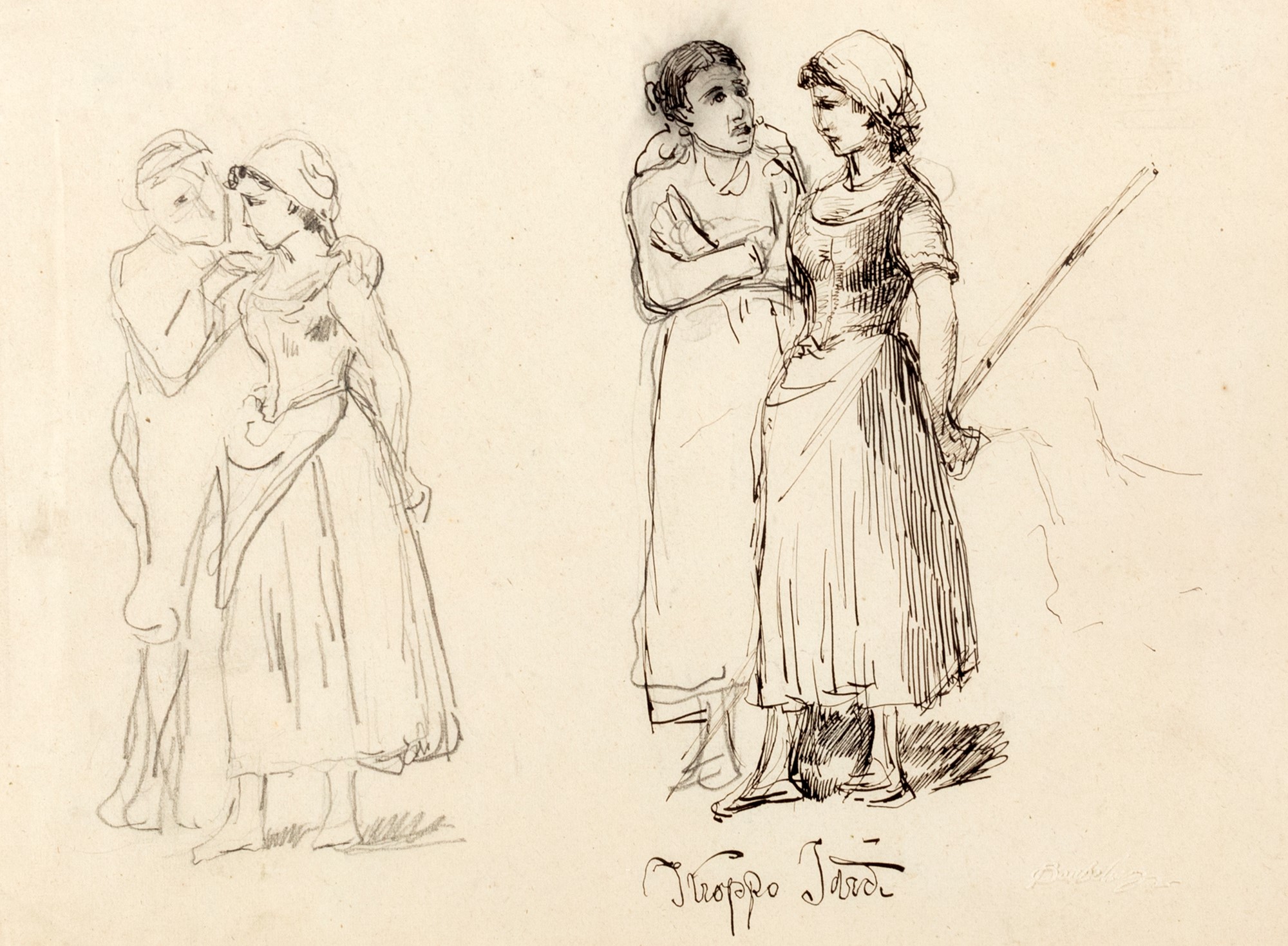 Costantino Barbella (Chieti 1852-Roma 1925) - "Troppo tardi". Studio di figure