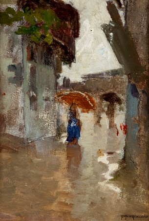 Pietro Fragiacomo (Trieste 1856-Venezia 1922) - "Tempo piovoso"