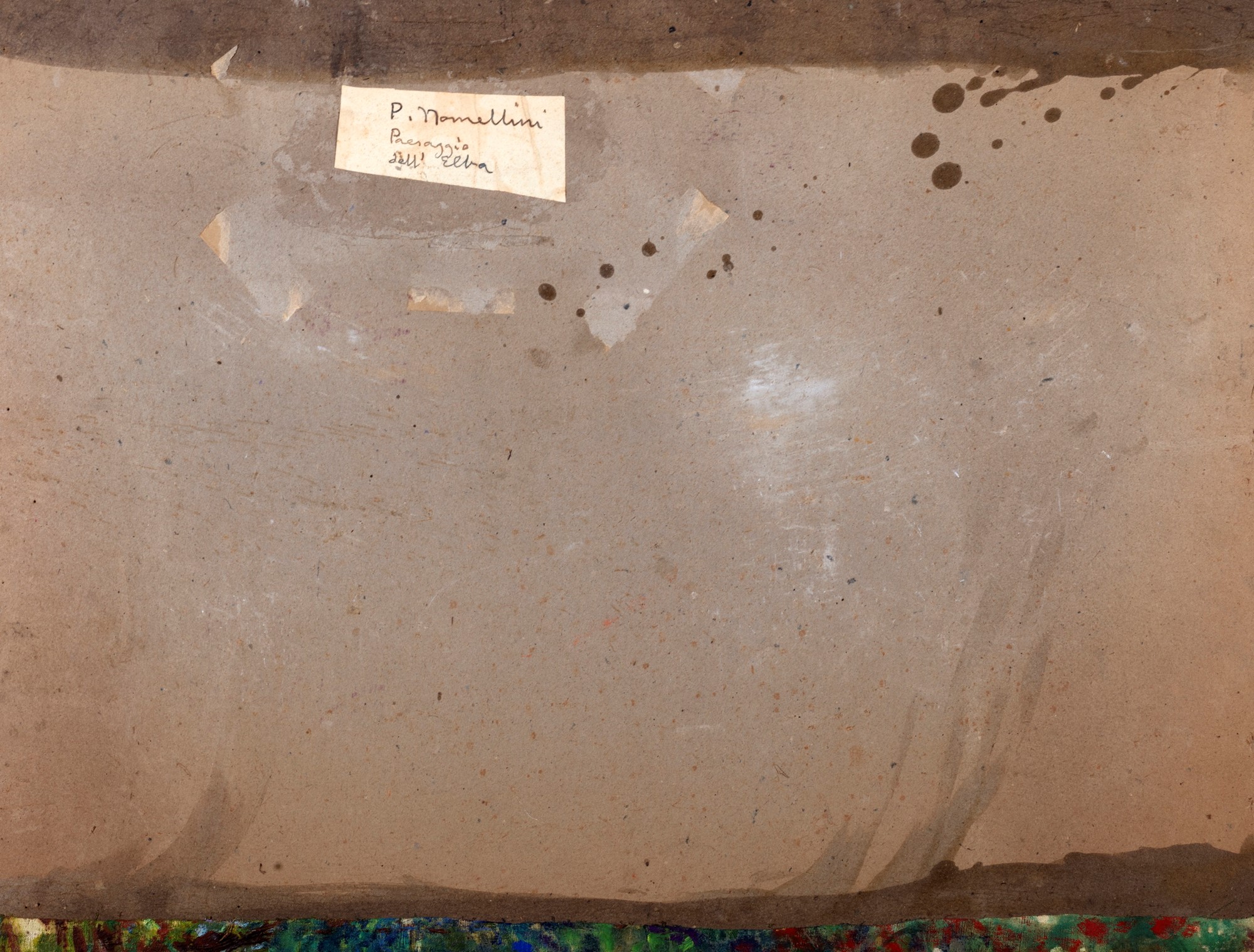firmato due volte, in rosso in basso a sinistra e in blu in basso a destra: P. NOMELLINI