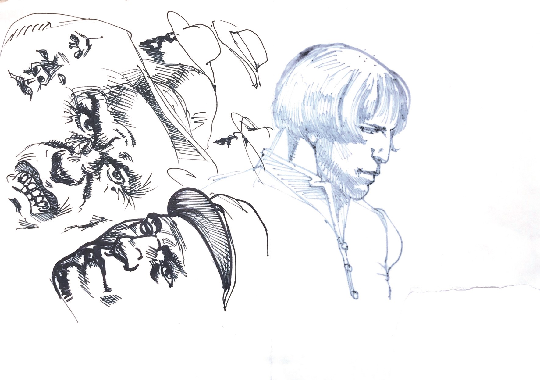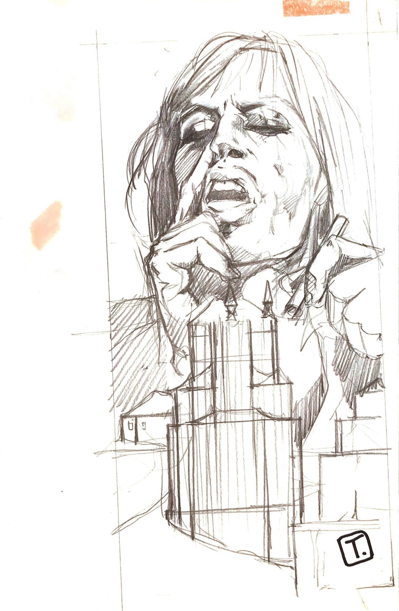 Tanino Liberatore (1953), Studi, Couple of illustrations composed of one drawing pencil on paper. Cm 33x21.5, signed with monogram and a study of characters, pencil and ink on paper front and back. Cm 21x30. Absence of the lower left white margin, opera intact.
