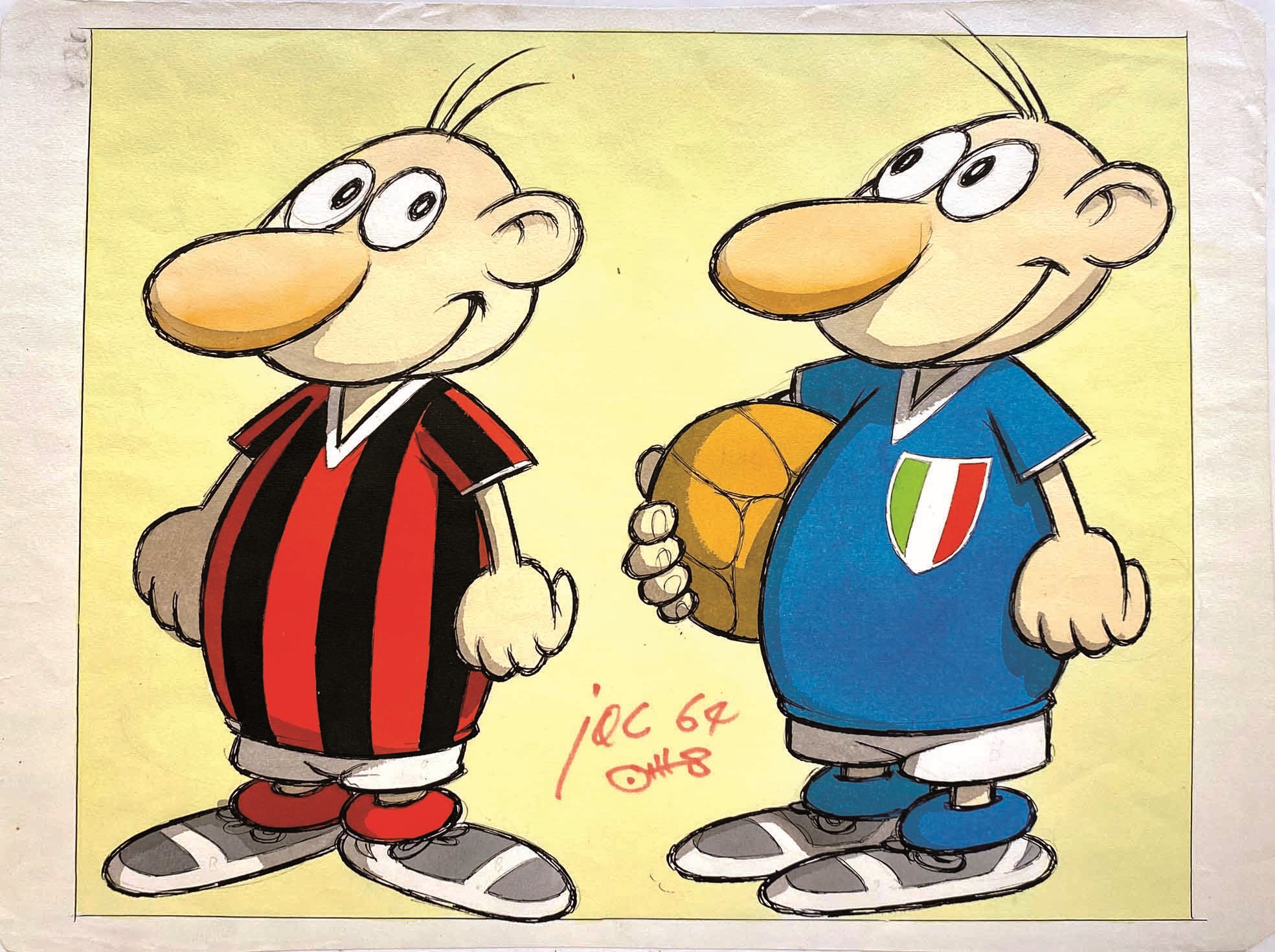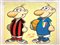 Benito Jacovitti (1923-1977), Due Giocatori, Pencil, ink and watercolor illustration on Fabriano paper. Cm 31x40. Signed and dated 1964. Excellent condition.
