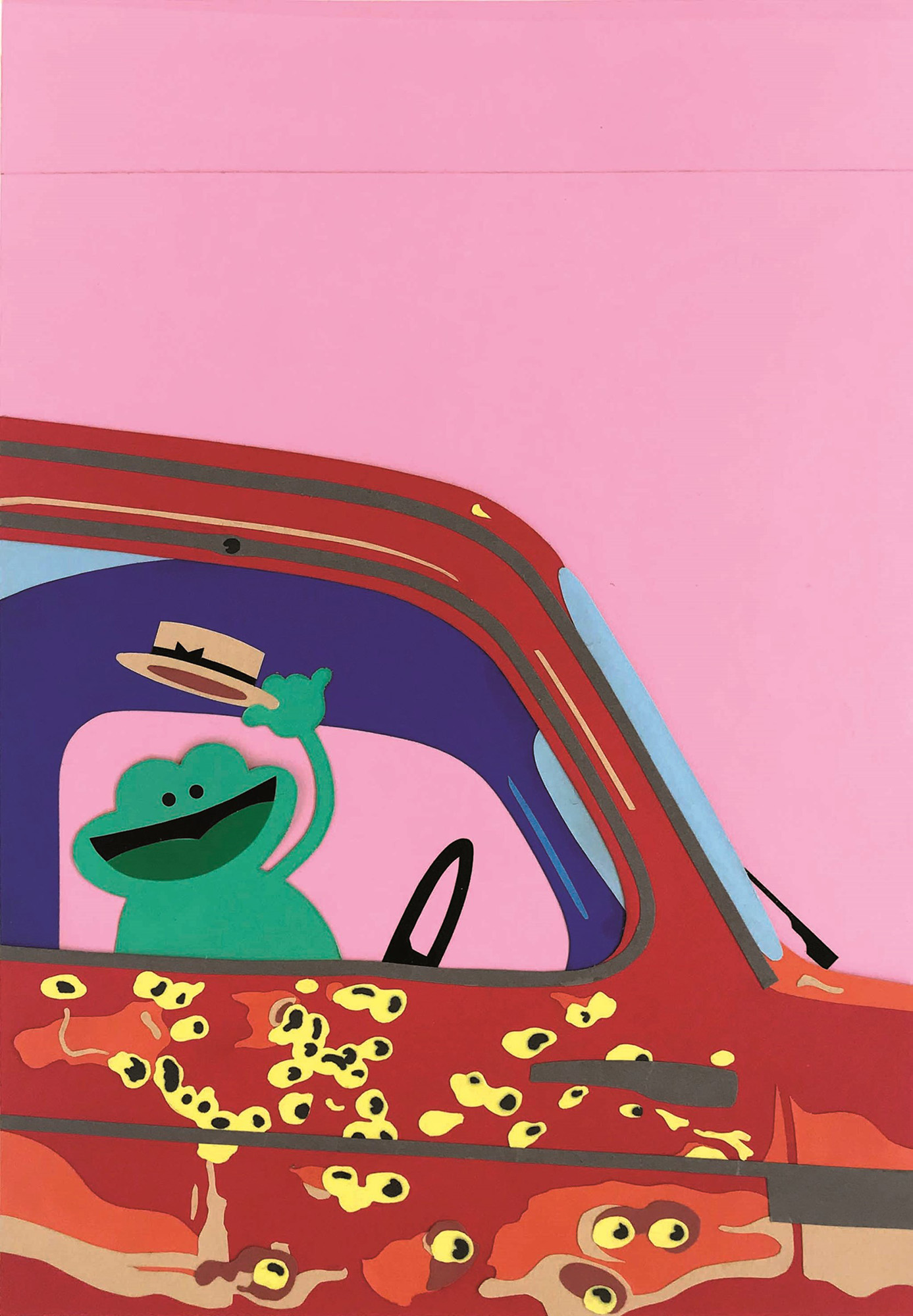Massimo Mattioli (1943-2019), Ranocchio , Mixed media collage on Fabriano cardboard. Cm 48x34 (work 38x26). Not dated but from the 1980s. Very good condition.