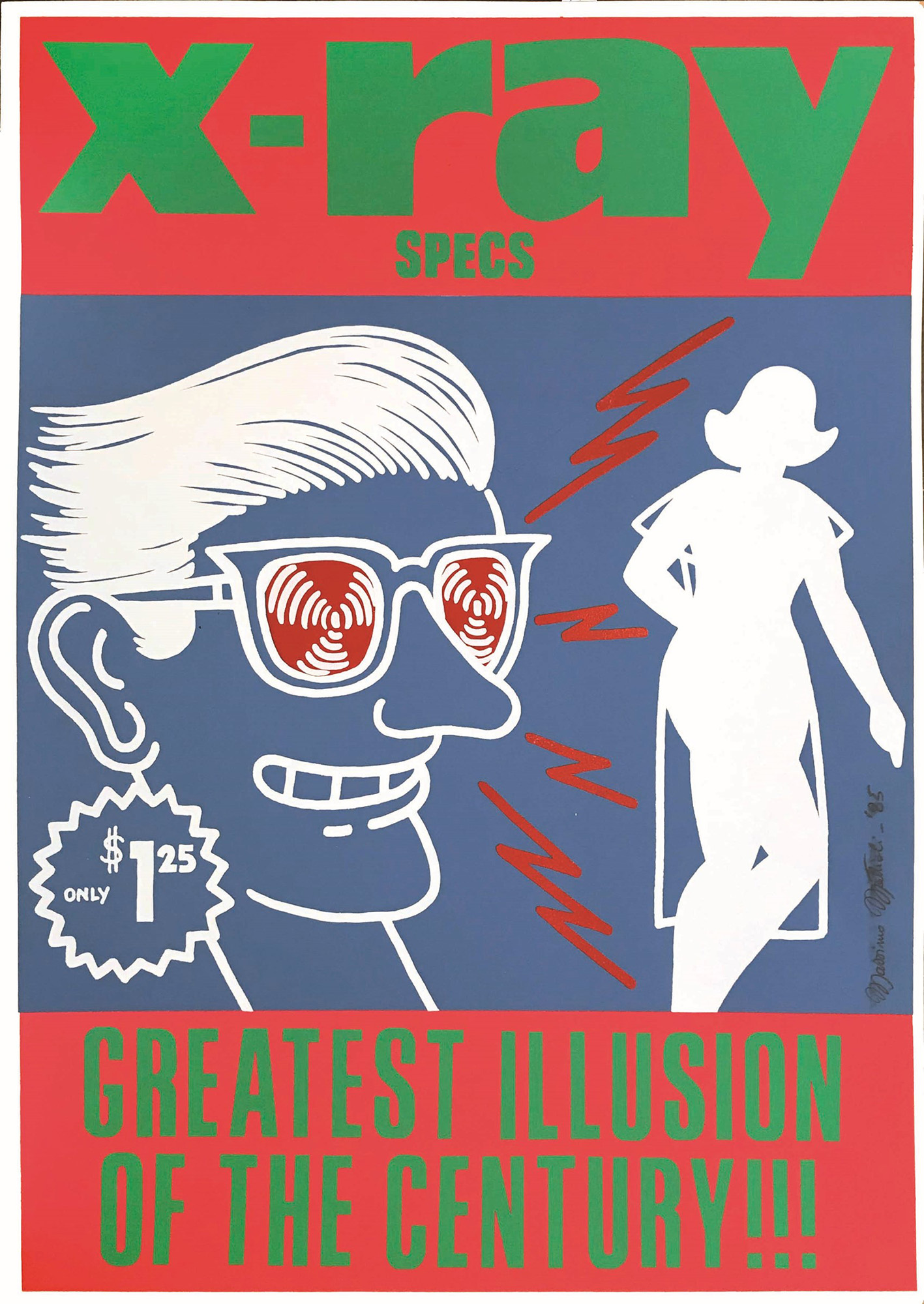 Massimo Mattioli (1943-2019), X- Ray Specs, Screen printing on cardboard. 71x51 cm. With original signature and dated 1985.