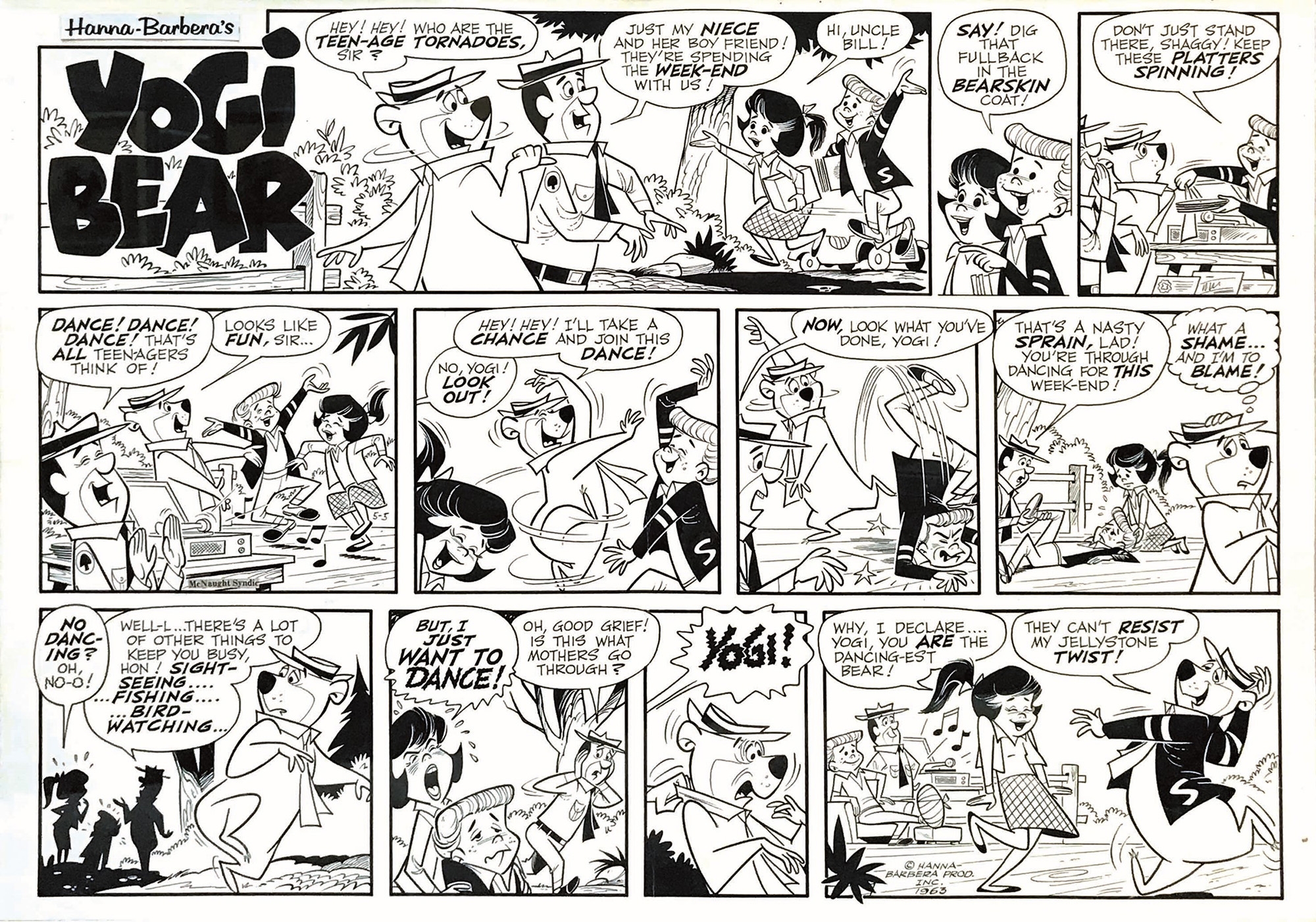Will Eisenberg (1911-1965), Hanna Barbera’s Yogi Bear , Sunday art published in 1963. Cm 50x70. Excellent condition.