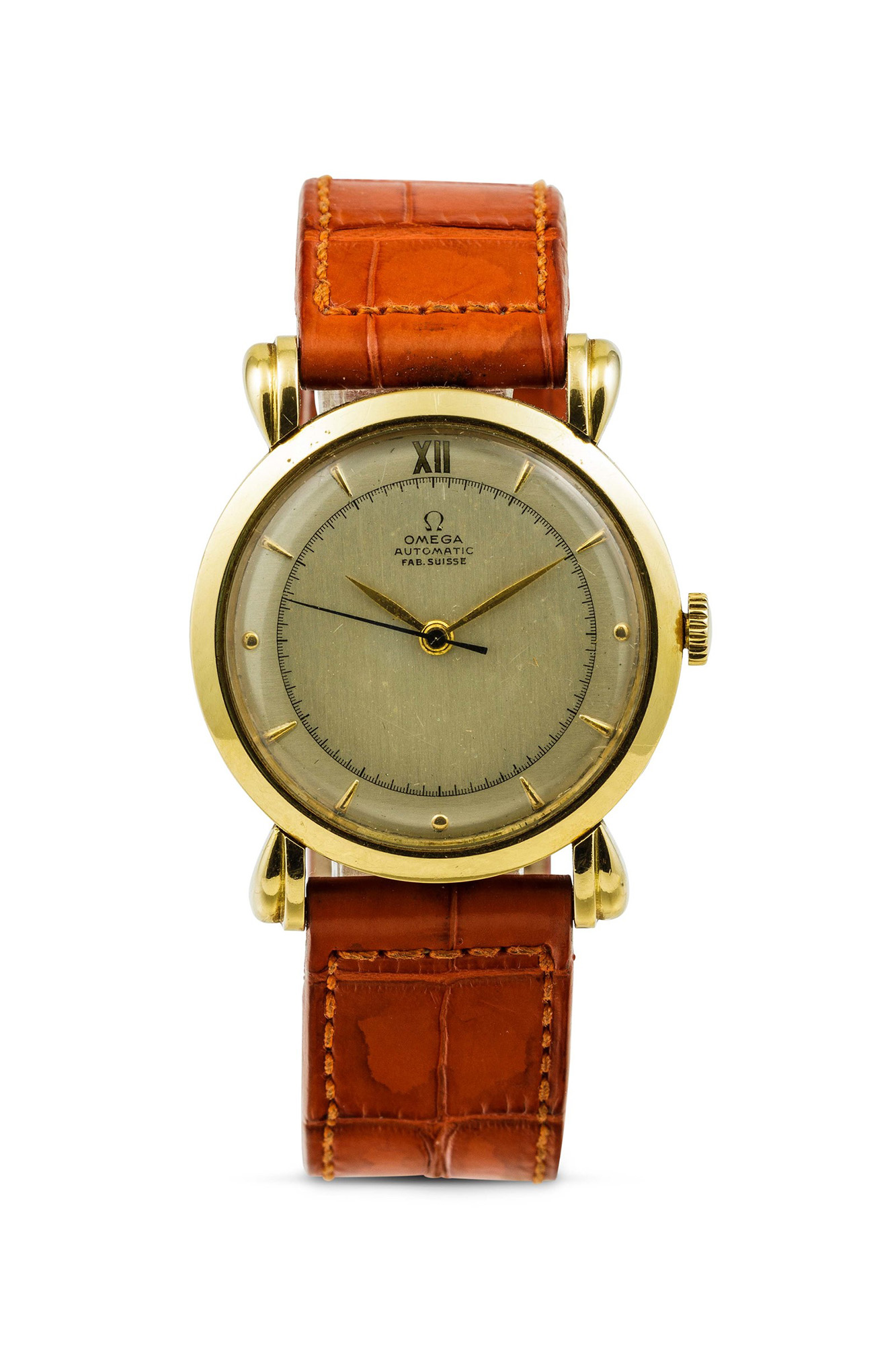 OMEGA - Automatico solo tempo in oro 18k con anse fantasia, quadrante bitonale e carica a martello. Marchio/Brand: Omega