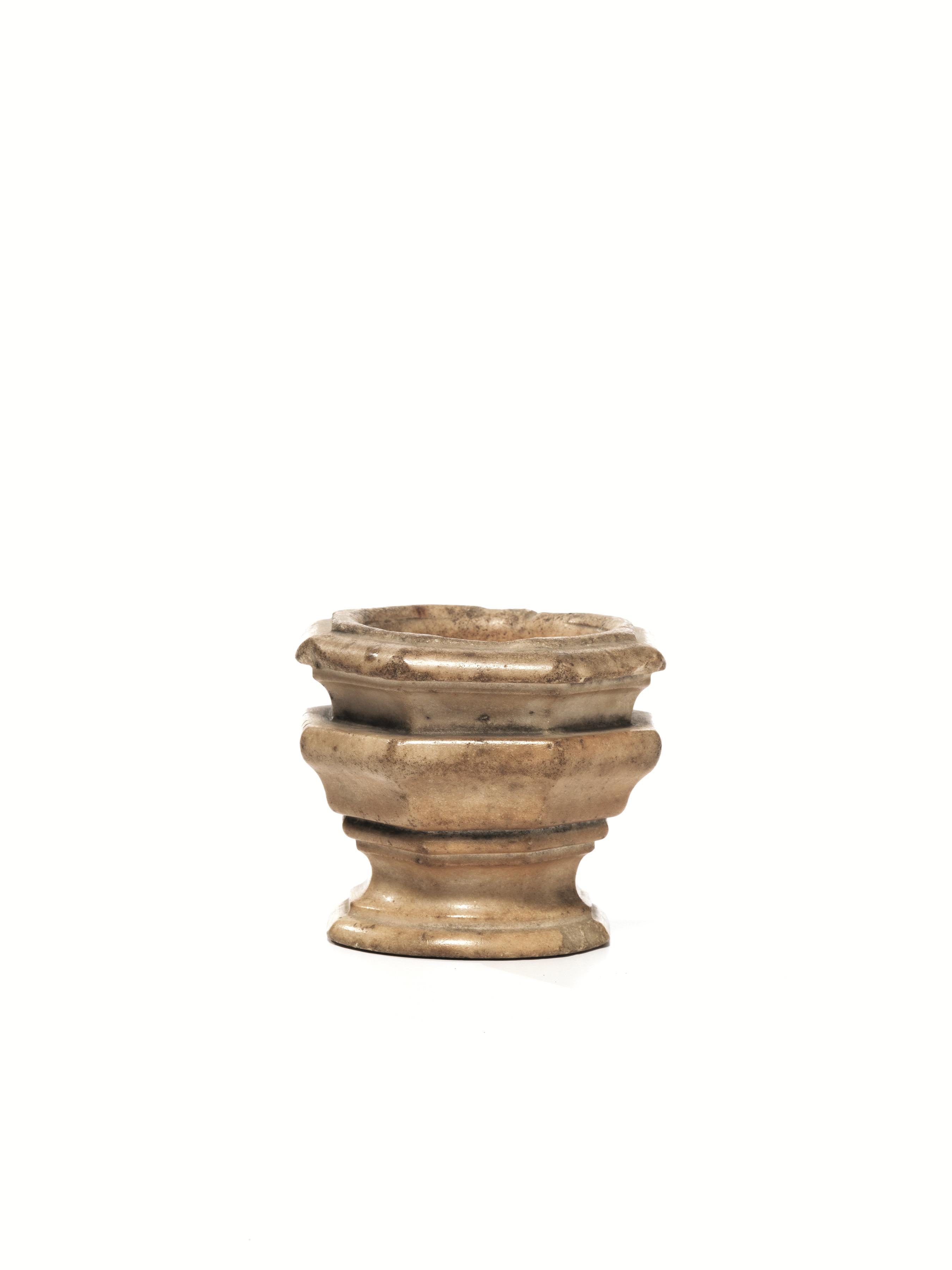 Calamaio, sec. XVIII, in marmo, di forma ottagonale, alt. cm 9, lievi danni e restauri