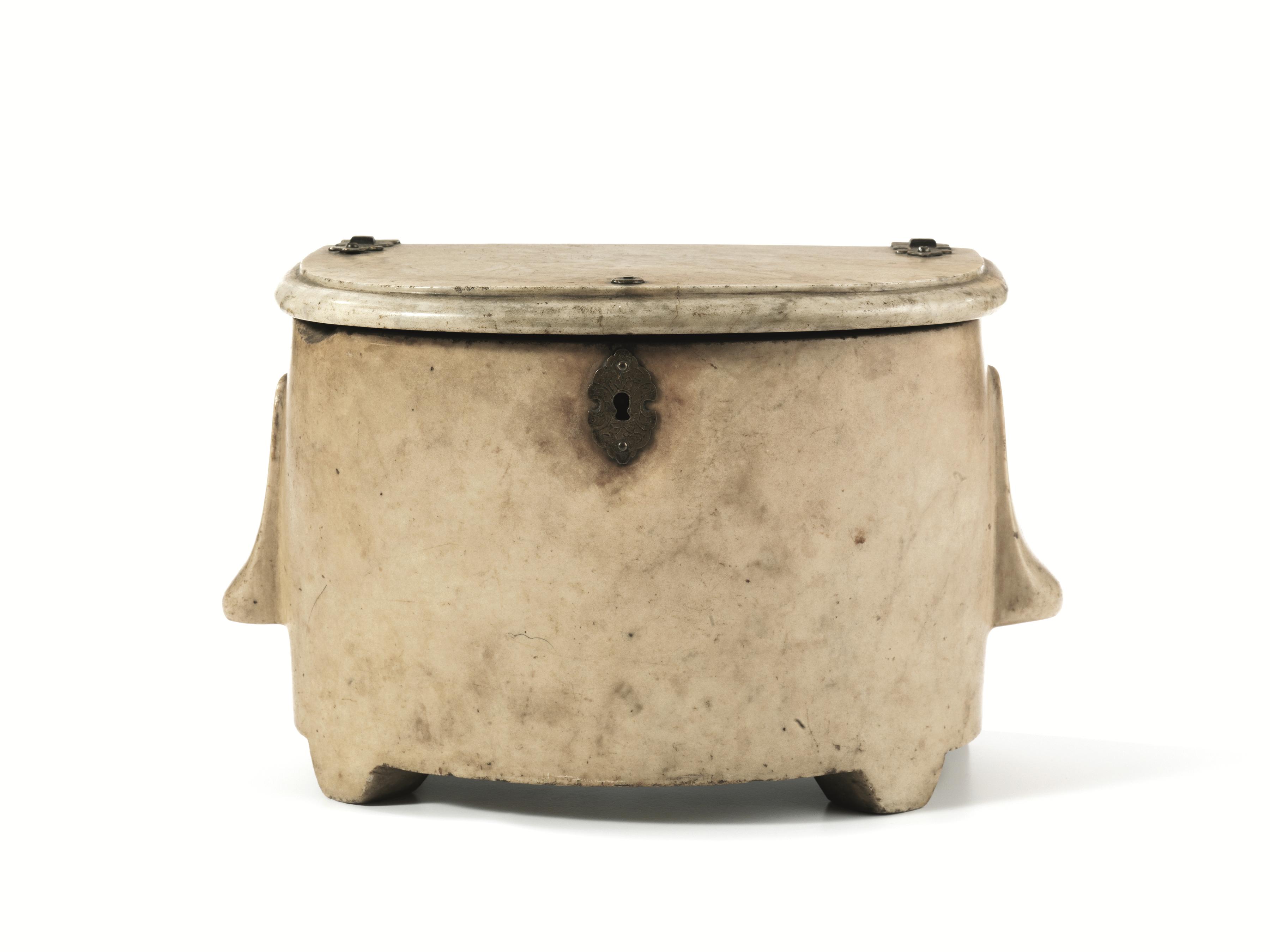 Scatola, secolo XVIII, in marmo, interno a due alloggi circolari, cm