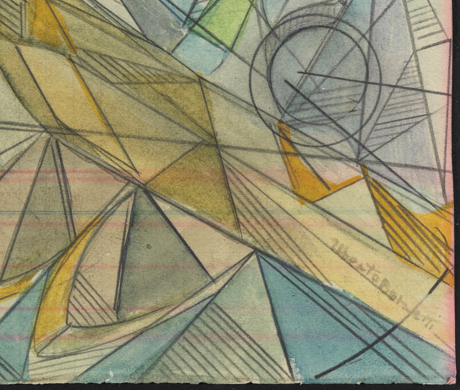 BONETTI UBERTO (1909 - 1993) Dalla serie Balbo. Partenza. 1933. Tecnica mista su carta. Cm 41,00 x 32,00. Firma in basso a destra. Autentica su fotografia di Adriana Bonetti riportante il relativo numero d'inventario. Cornice presente
